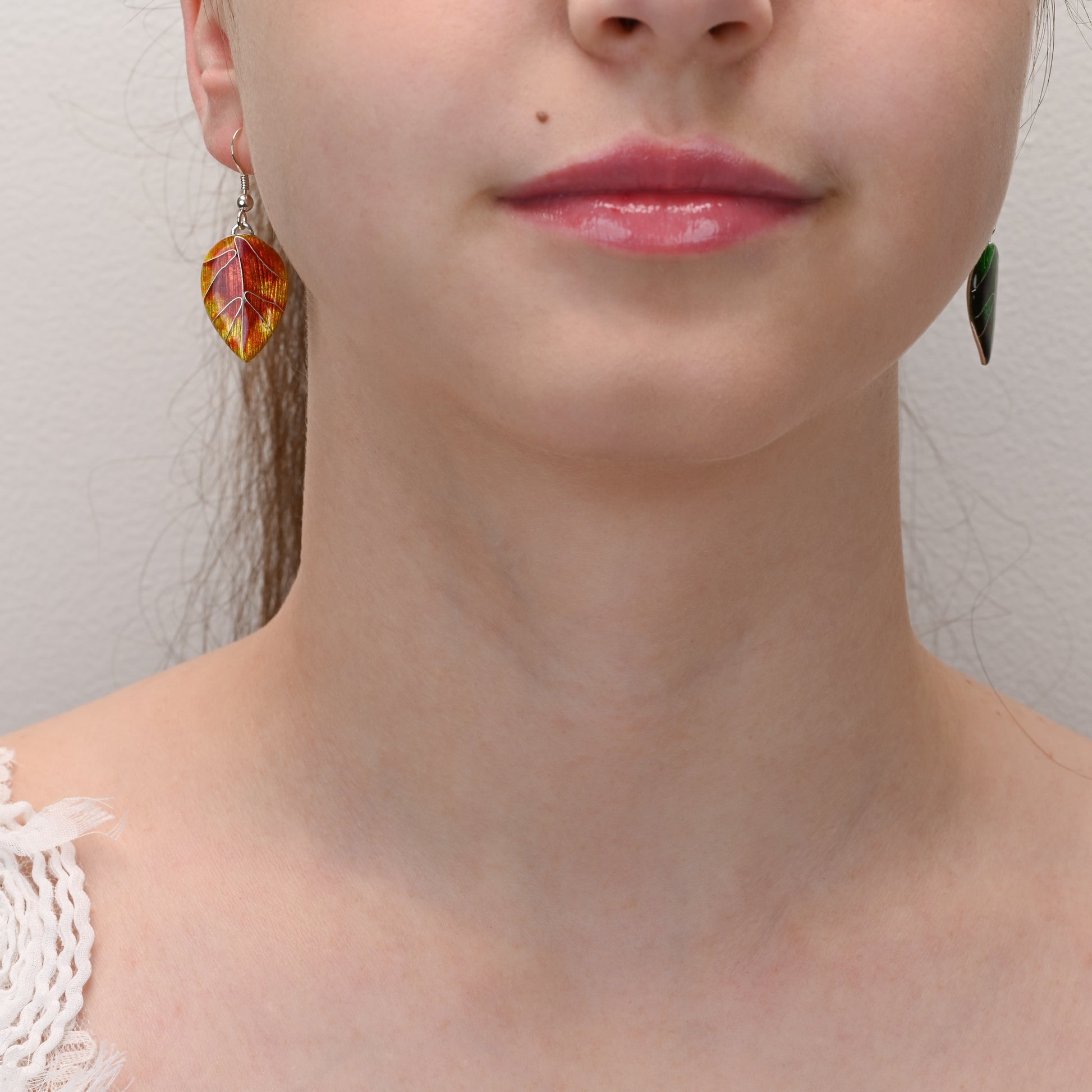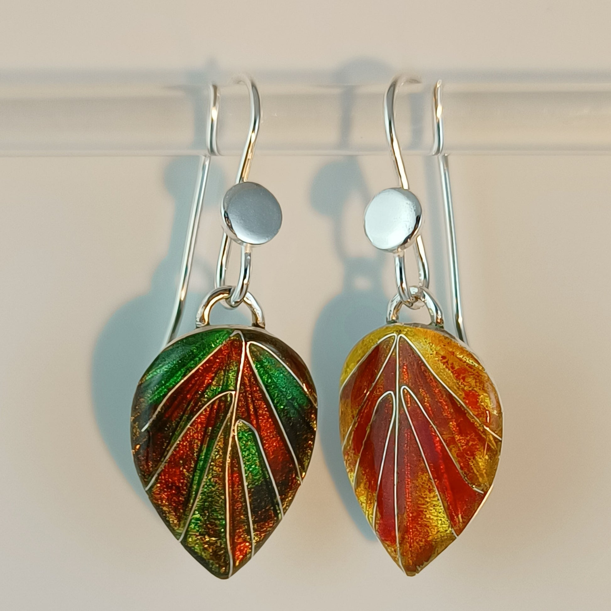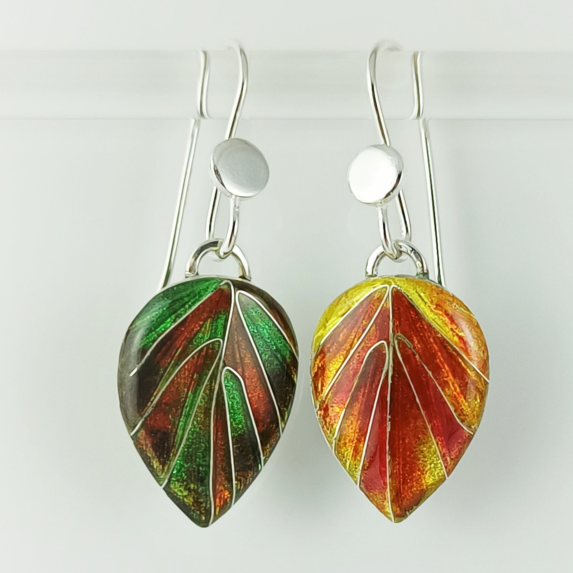 - Materials: Fine silver (999), cloisonné vitreous enamels, sterling silver ear wires