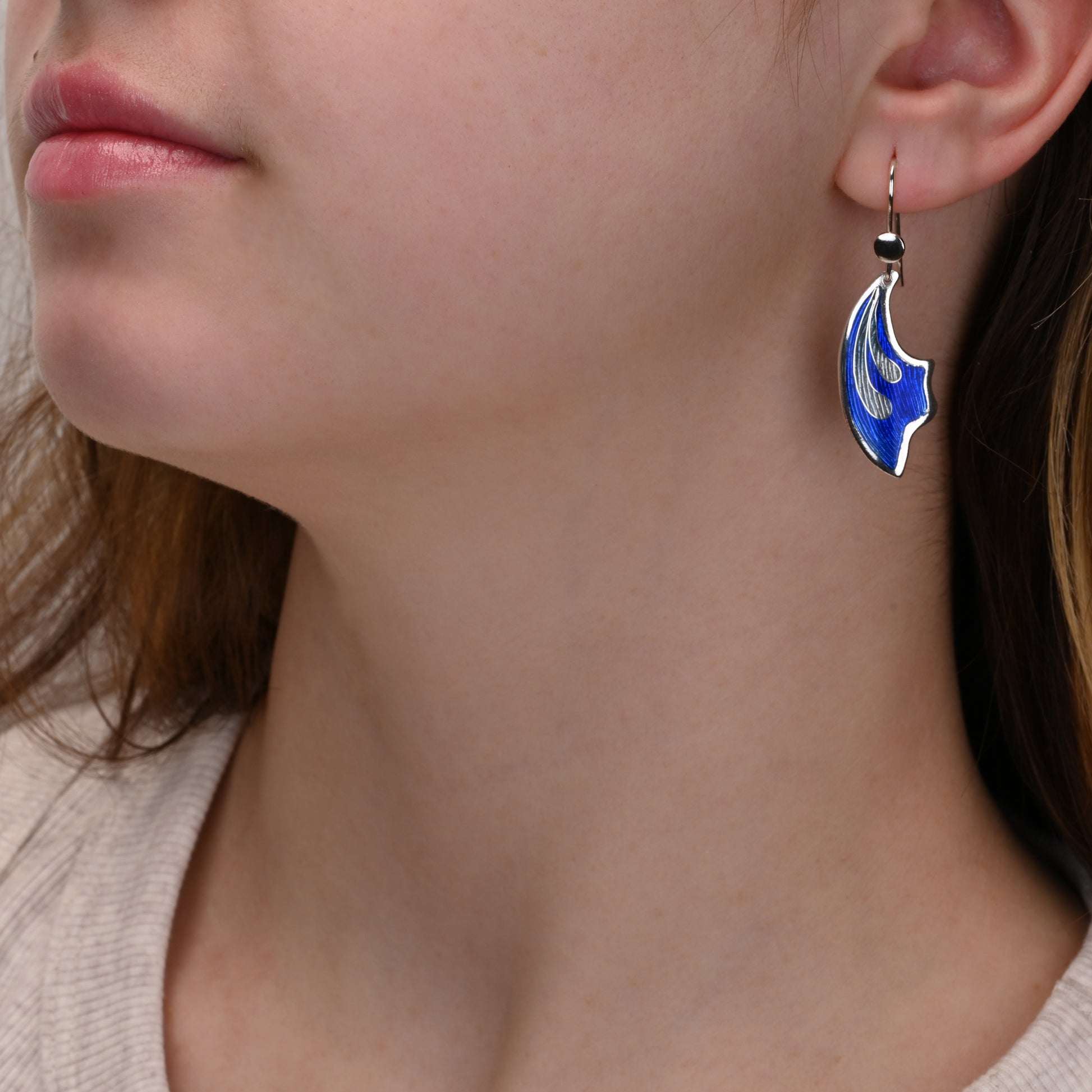 - Materials: Fine silver (999) with sterling silver ear wires, champlevé and cloisonné enamels