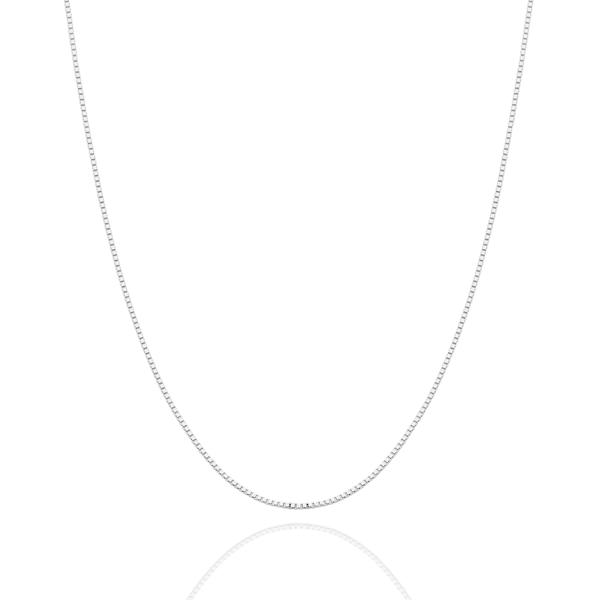 Step up your style with our luxurious White Gold Box Chain, featuring a slightly thicker 0.8mm width that exudes elegance and sophistication. Crafted from high-quality white gold, this chain is perfect for those who appreciate a classic yet bold piece of jewelry. The box link design offers a timeless appeal, making it an ideal accessory for both everyday wear and special occasions. The 0.8mm width provides a more substantial presence, allowing it to be worn alone or paired with a pendant to showcase its refined beauty.