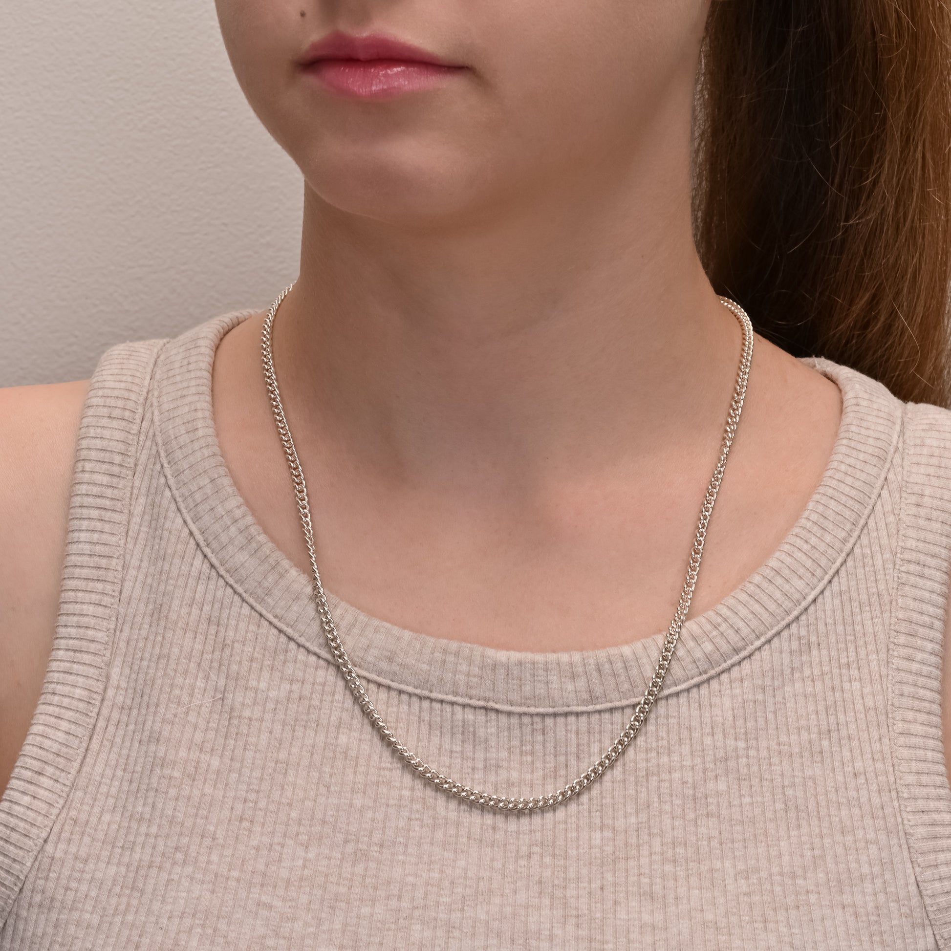 Refine your jewellery collection with our Close Curb Silver Chain, meticulously crafted in Italy from sterling silver 925 and fine silver plated for an added touch of luxury. Featuring close curb links with a 3.5mm size, this chain offers a sleek and elegant look that complements any style.