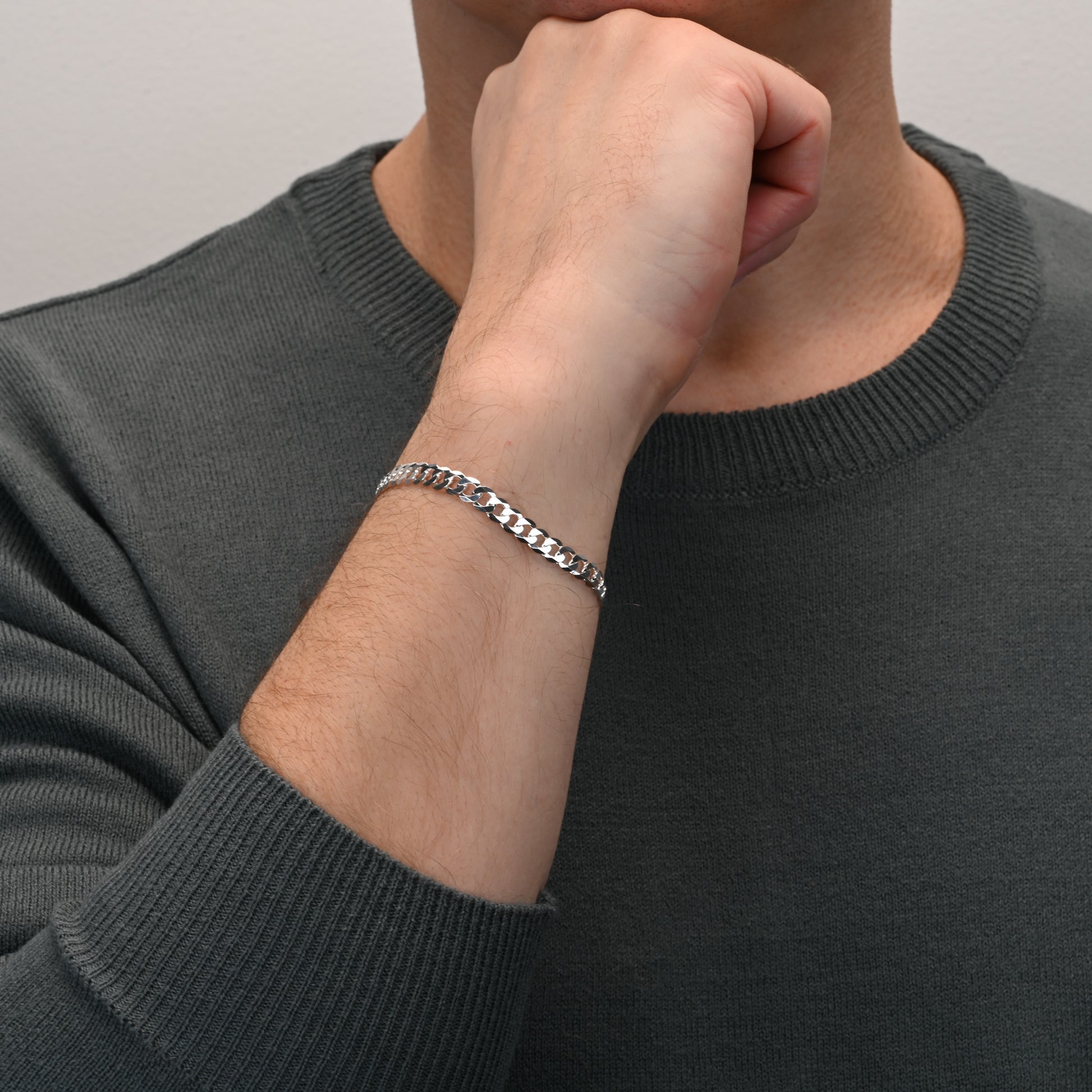 Curb diamond cut silver bracelet 7mm