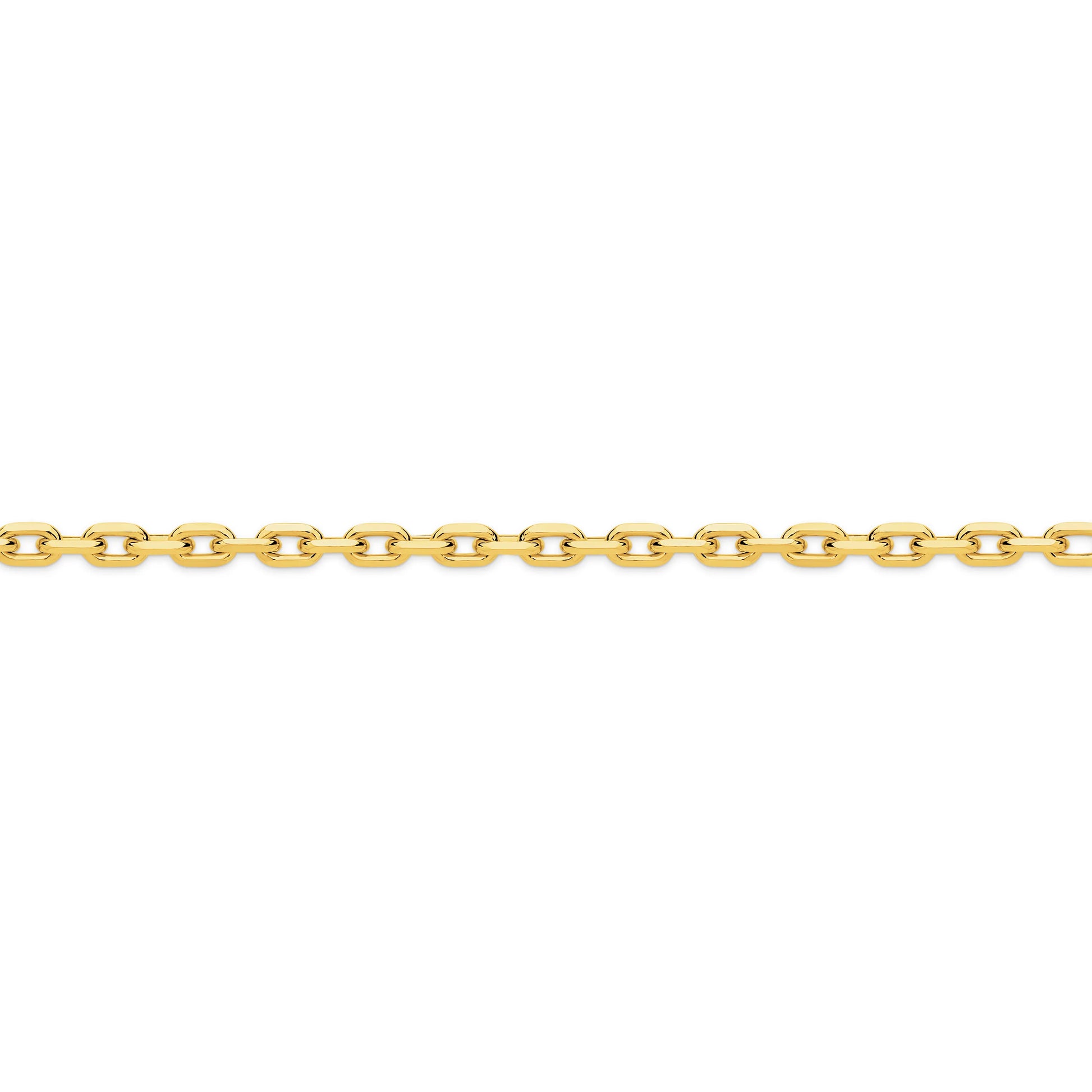 Make a bold statement with our Diamond Cut Gold Anchor Chain, meticulously crafted with a substantial 3.6mm width. This chain combines strength with refined elegance, perfect for those who seek both durability and a luxurious aesthetic in their jewelry. The intricate diamond-cut design enhances the chain's brilliance, capturing light beautifully with every movement.