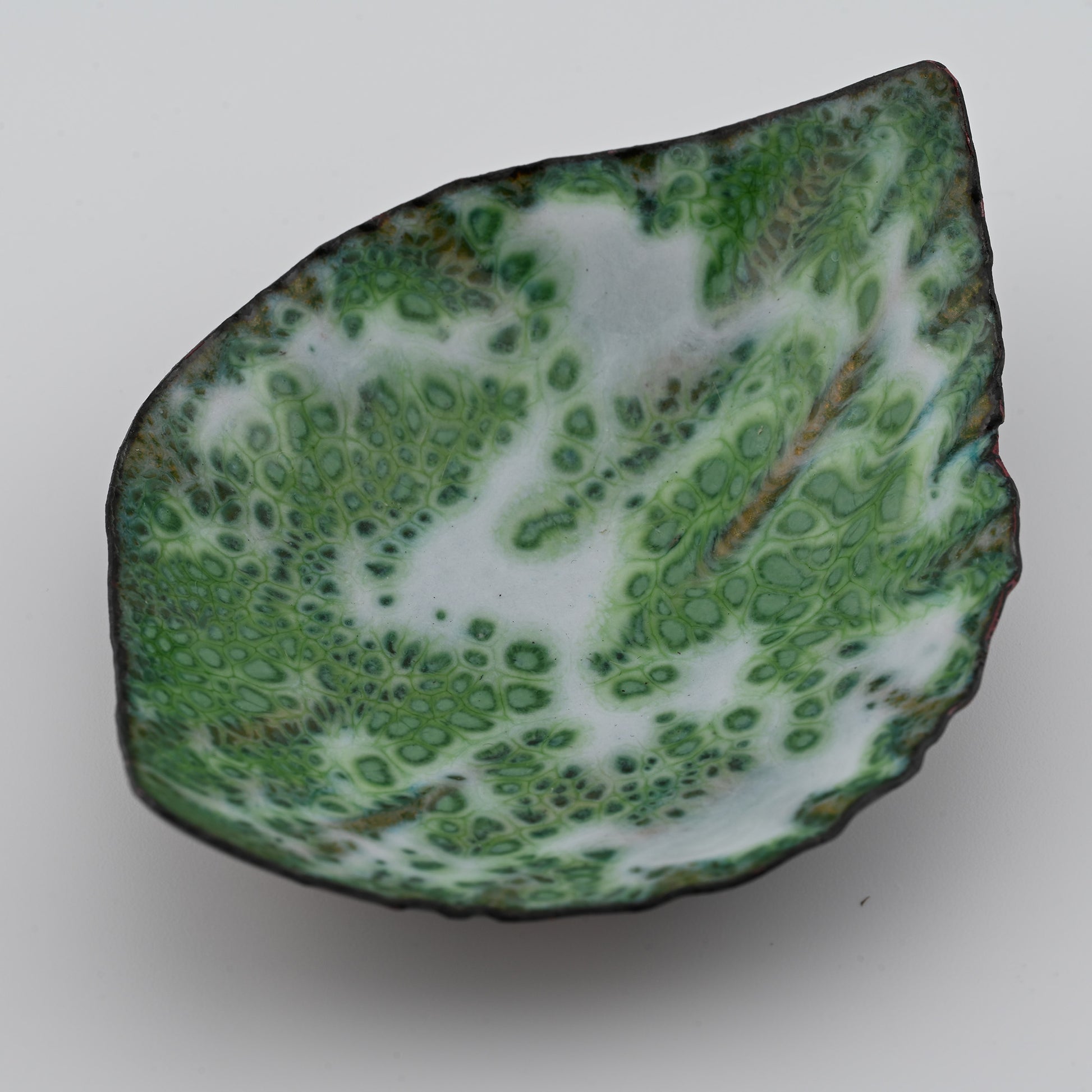 Enameled Copper Bowl "A Lone Leaf"