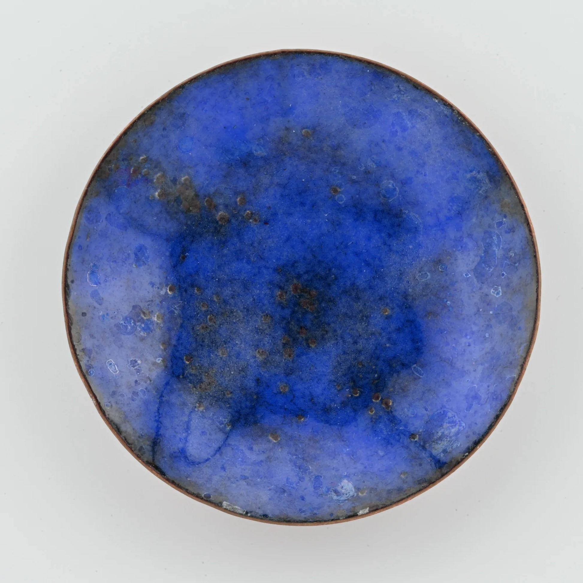 Introducing the Enameled Copper Jewellery Bowl 'Lapis,' a stunning piece that captures the deep, rich hues of lapis lazuli. This handcrafted bowl features a beautiful blue enamel finish with subtle bronze flecks, reminiscent of the precious gemstone. Perfect for storing your cherished jewellery or as a decorative centrepiece, this bowl adds a touch of elegance and artistry to any space.