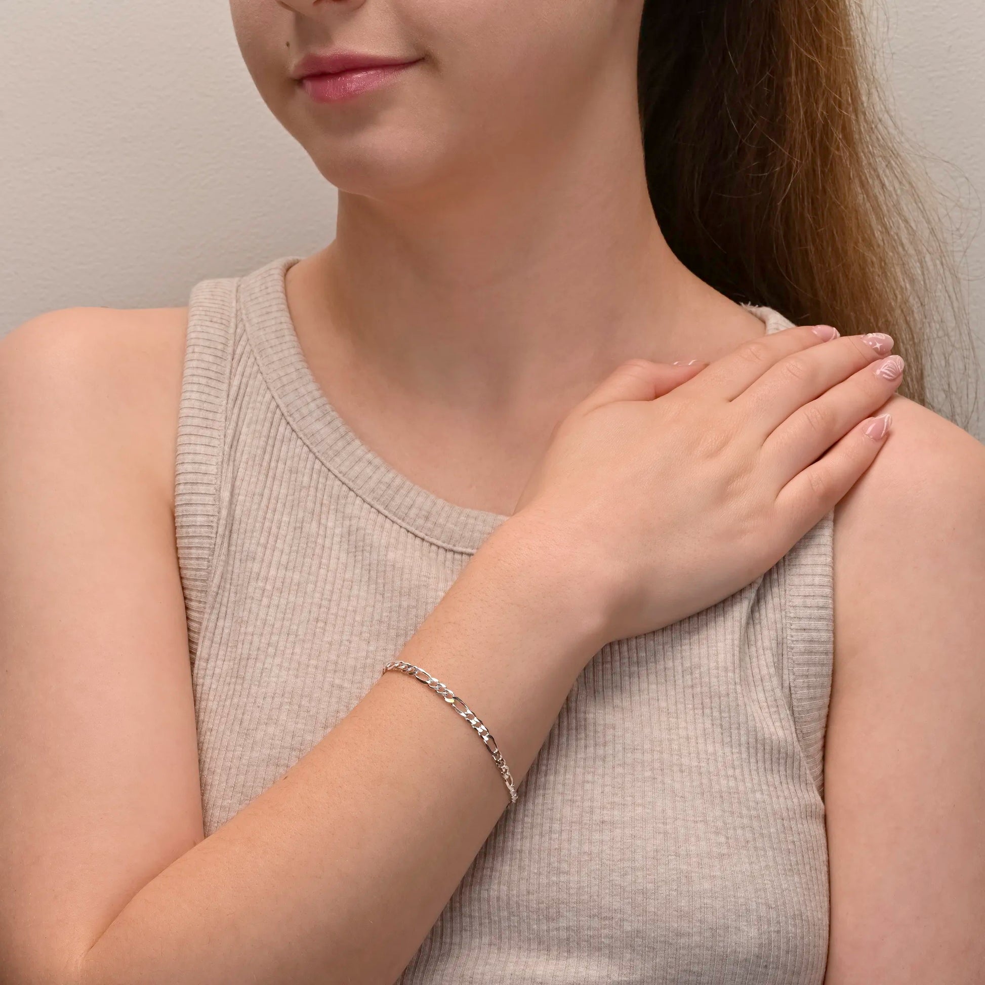 Elevate your style with the timeless elegance of our Figaro Silver Bracelet. Meticulously crafted from high-quality sterling silver, this bracelet features the classic Figaro link design, ensuring both superior quality and lasting durability.