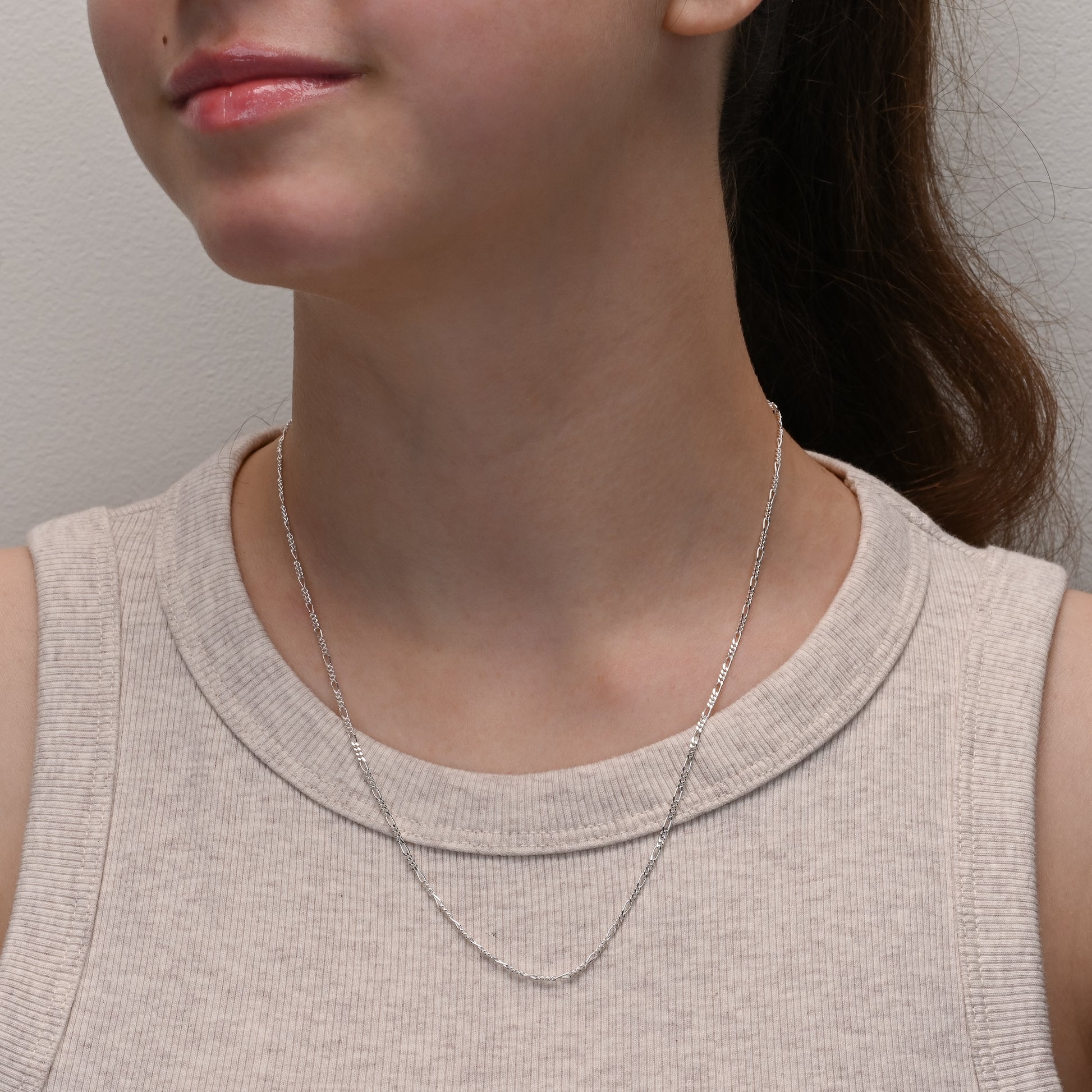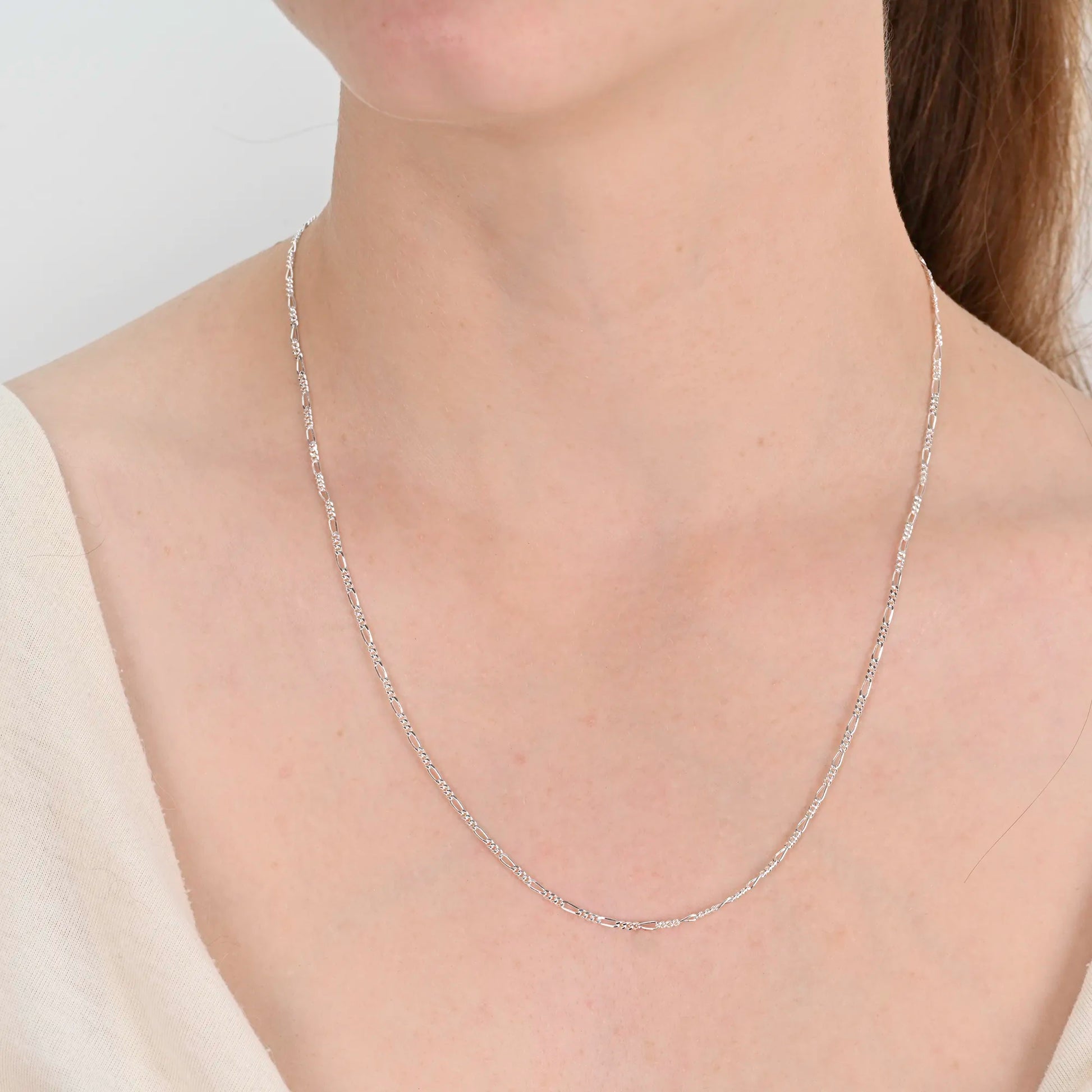 Add a touch of classic elegance to your ensemble with the Figaro Silver Chain. This finely crafted chain features a 1.7mm link size, making it a perfect accessory for any occasion. Its timeless design ensures it will be a cherished piece in your jewellery collection for years to come.
