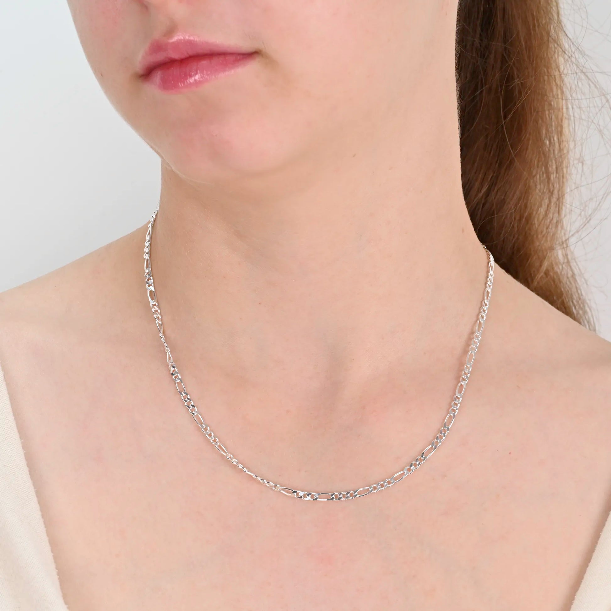 Elevate your style with the classic Figaro Silver Chain. Crafted from high-quality sterling silver (925), this chain features a 3mm link size, offering a sleek and versatile accessory that adds a touch of elegance to any outfit.