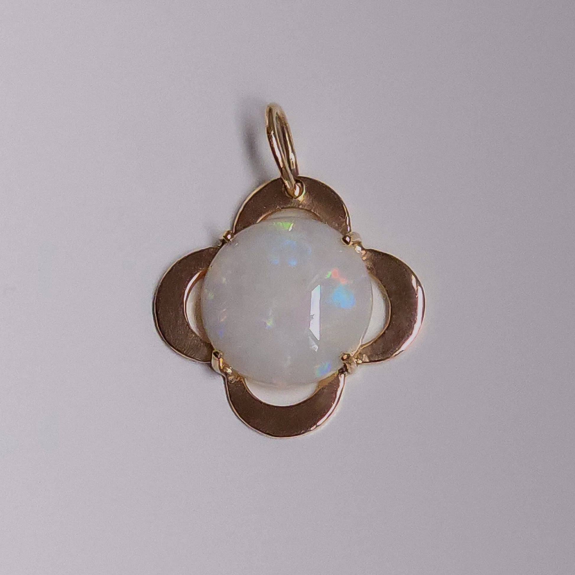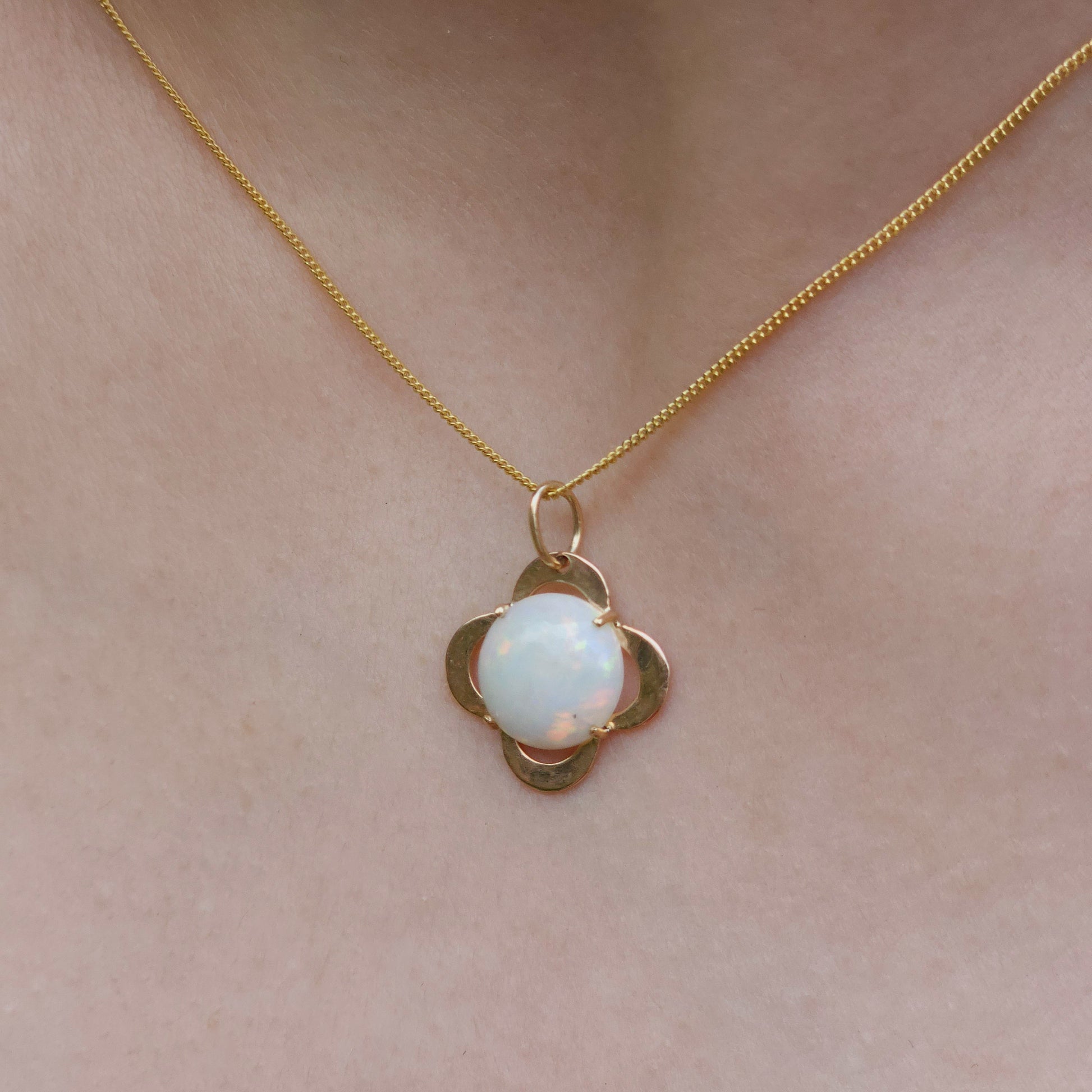 Experience the epitome of luxury with our breathtaking Four Petals Opal Gold Pendant, a masterpiece of craftsmanship and elegance, exclusively handmade in Australia. This unique pendant showcases a mesmerizing Australian White Opal, brilliantly set in lustrous 9-carat gold, capturing the essence of refined beauty.