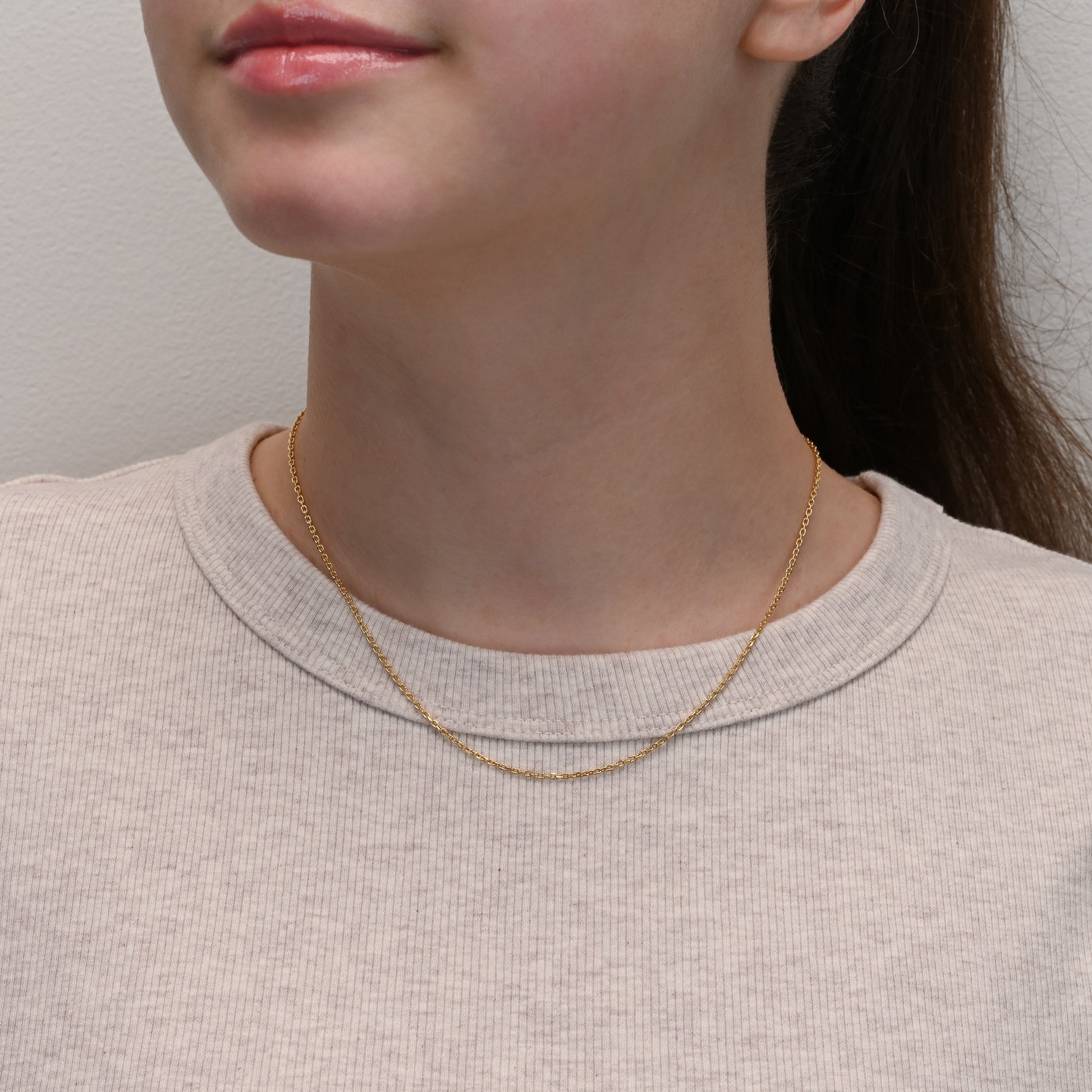 Enhance your jewelry collection with the elegant charm of our Gold Plated Silver Cable Chain. Crafted in Italy from sterling silver 925 and plated with 18ct gold, this chain features delicate cable-style links with a size of 1.4mm, offering a refined and sophisticated look perfect for any occasion.