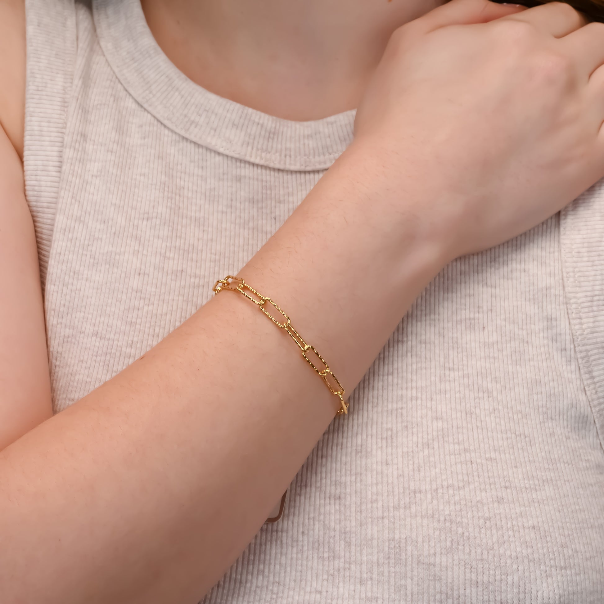 Add a touch of contemporary elegance to your jewellery collection with our Gold Sparkly Large Paperclip Silver Bracelet. Crafted in Italy from sterling silver 925 and plated with 18ct gold, this bracelet features large paperclip links that sparkle brilliantly, making it a standout piece for any occasion.