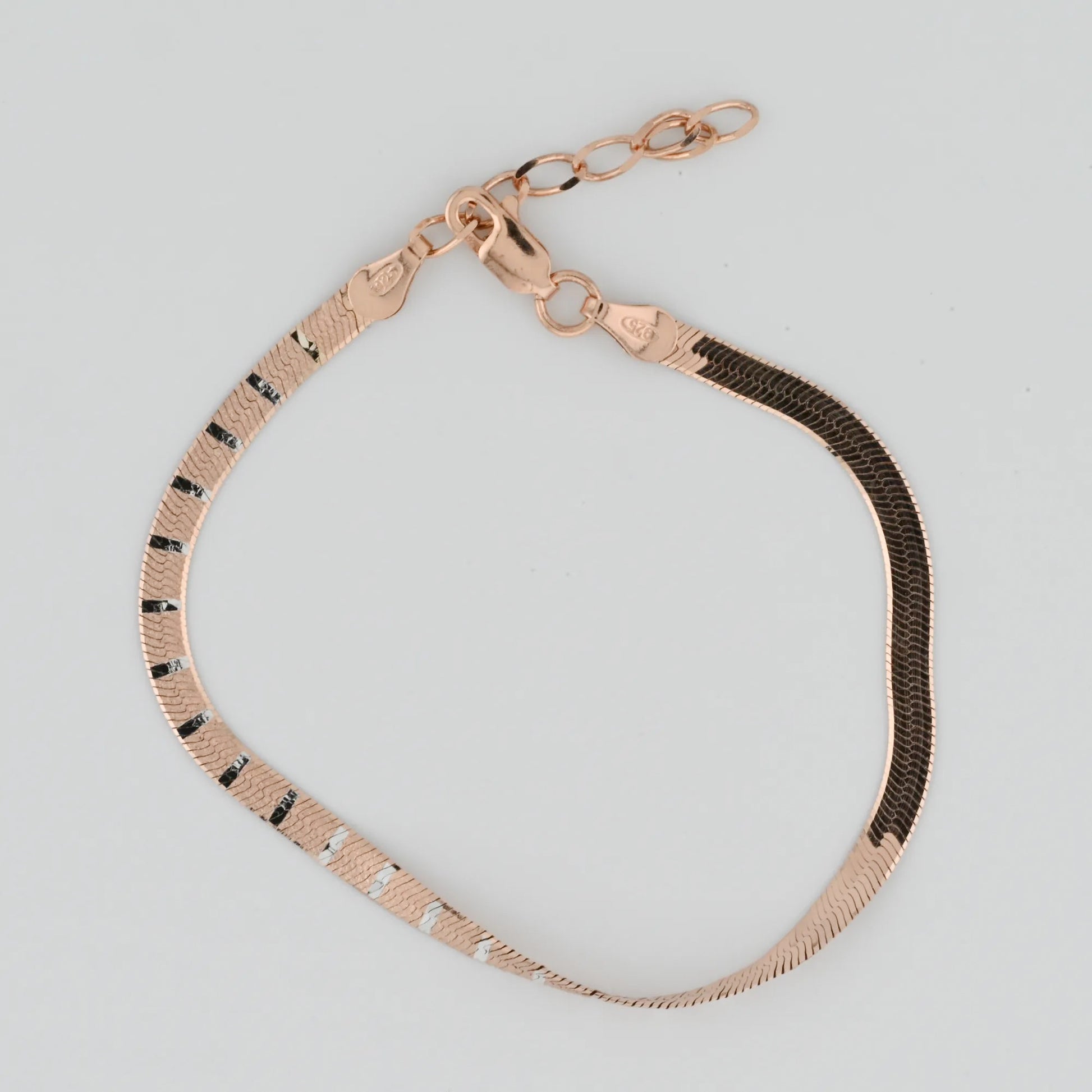 Herringbone Rose Gold Plated Silver Bracelet 3.4mm