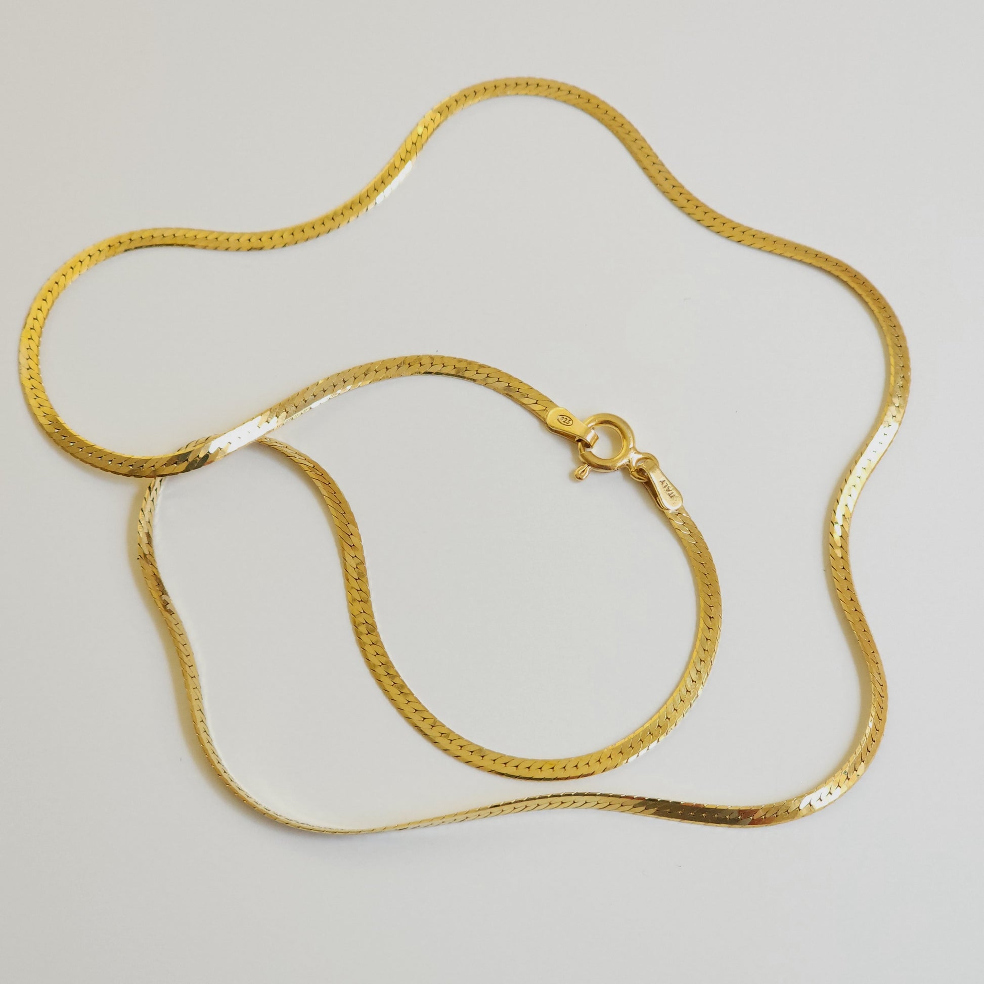 Enhance your jewellery collection with the classic elegance of our Herringbone Gold-Plated Silver Chain. Expertly crafted in Italy from sterling silver 925 and plated with 18ct gold, this chain features a sophisticated herringbone design with a link size of 2mm, perfect for adding a touch of refinement to any outfit.