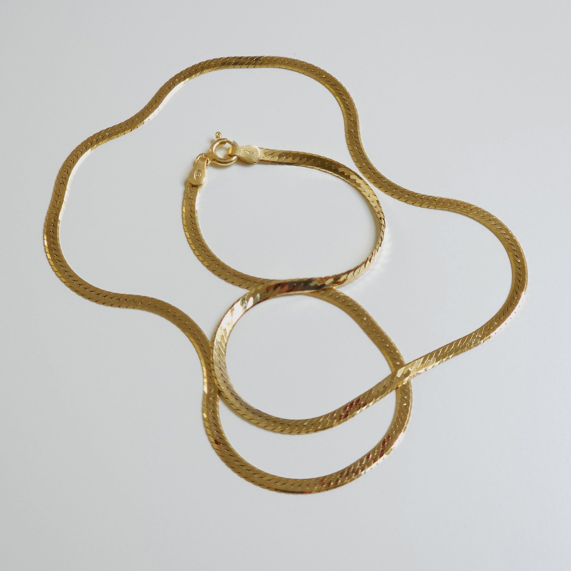 Elevate your jewellery collection with the luxurious elegance of our Herringbone Gold-Plated Silver Chain. Crafted in Italy from sterling silver 925 and plated with 18ct gold, this chain features a sophisticated herringbone design, perfect for adding a touch of refinement to any outfit.