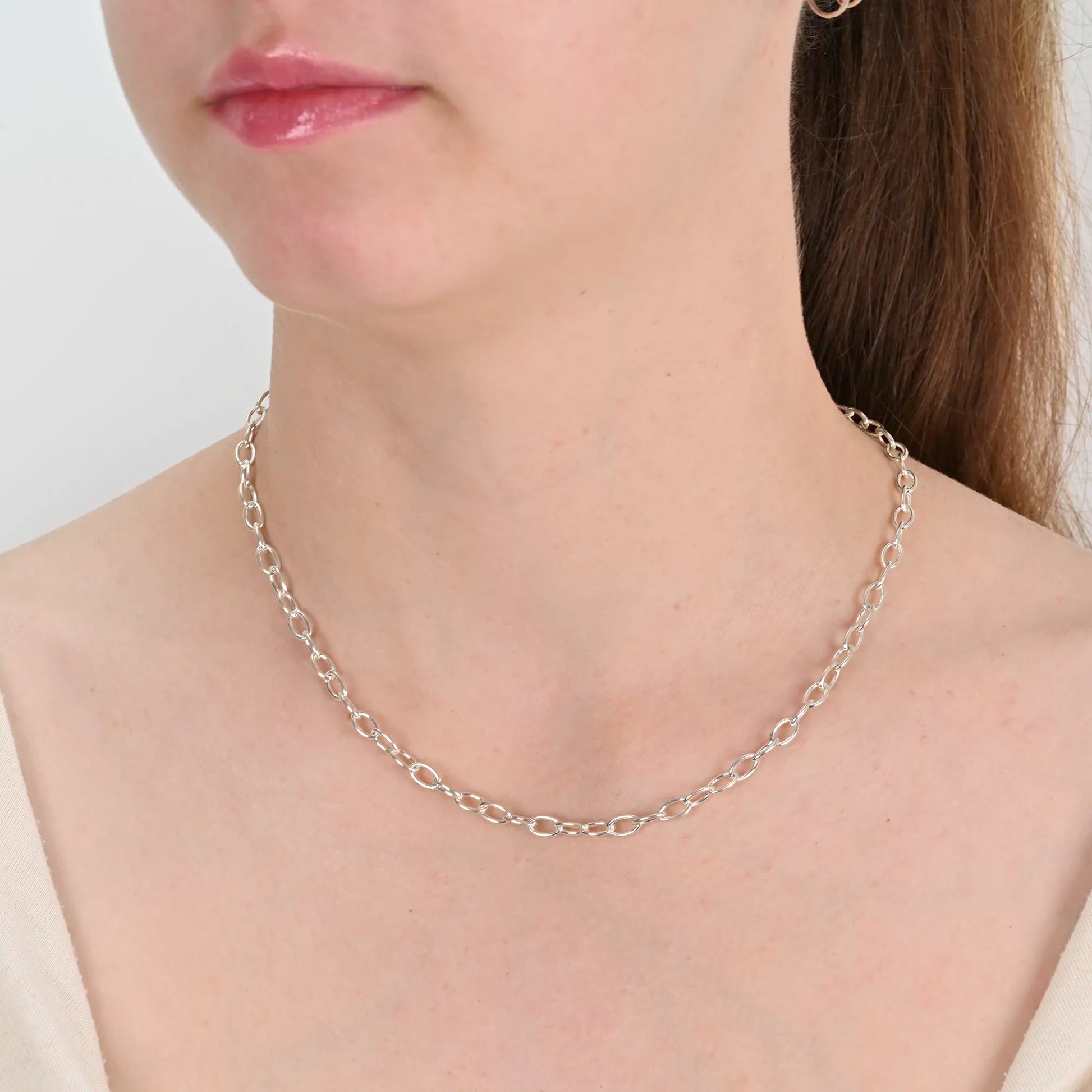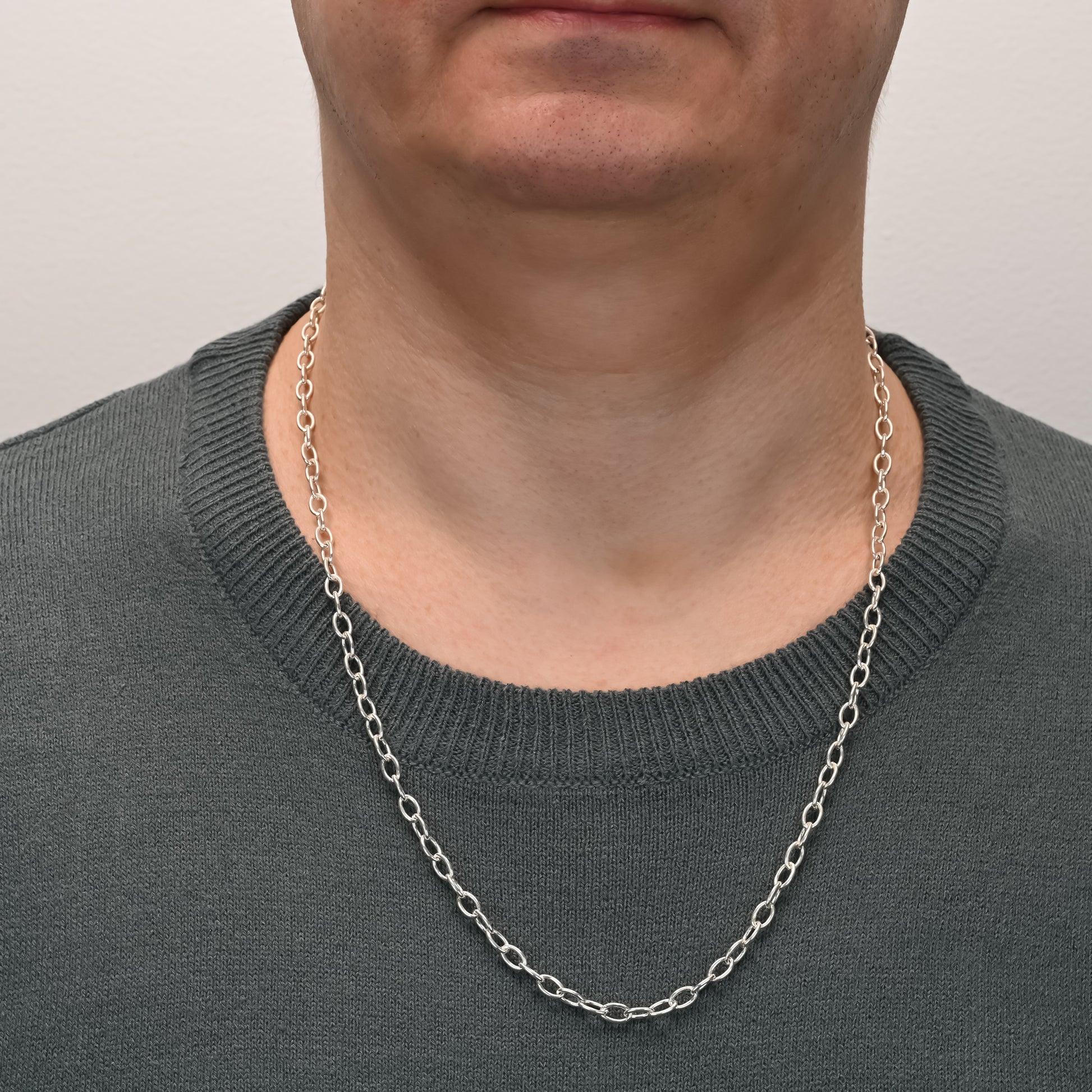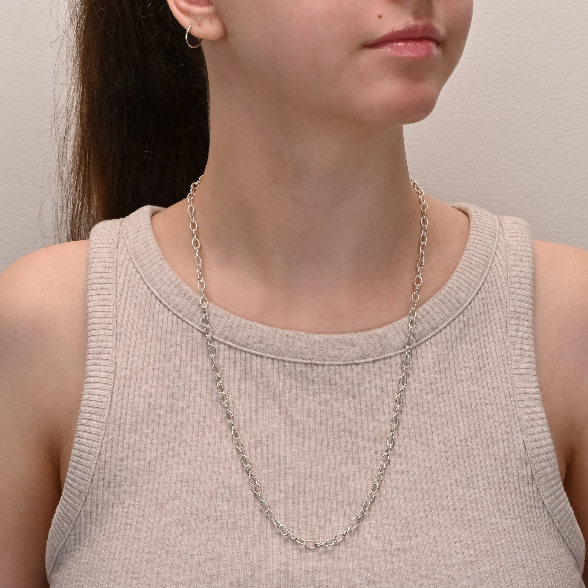 Enhance your jewellery collection with our Long Link Cable Silver Chain, expertly crafted in Italy from sterling silver 925. This elegant chain features long links with a size of 4.4mm, providing a modern and versatile look perfect for any occasion.
