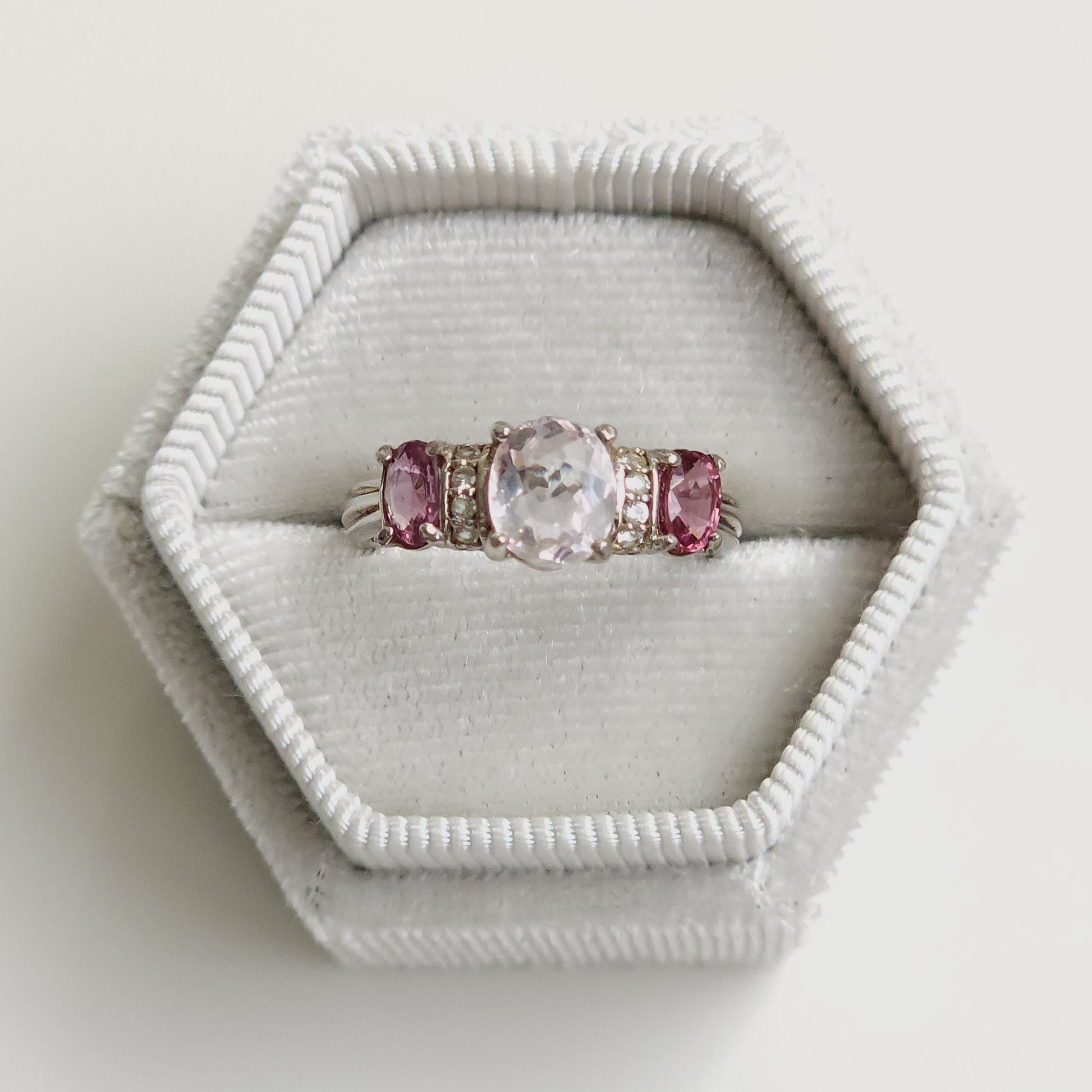Discover the delicate charm of nature with our Morganite and Pink Sapphire Silver Ring. Inspired by the elegance of flower petals, this piece captures the essence of floral beauty and grace. It radiates gentle energies of love, compassion, and peace, reflecting the heart's natural purity. This ring is a symbol of love and harmony.