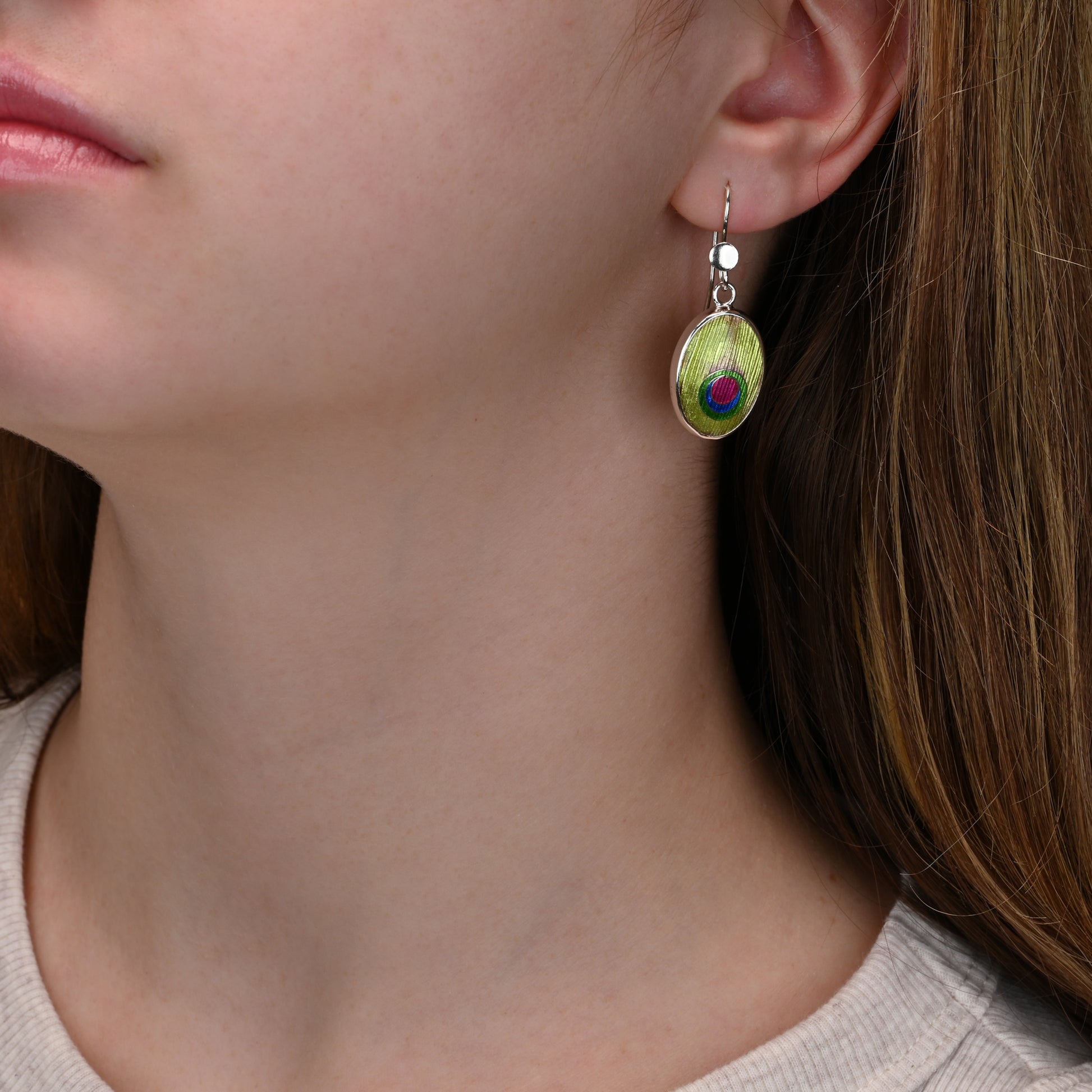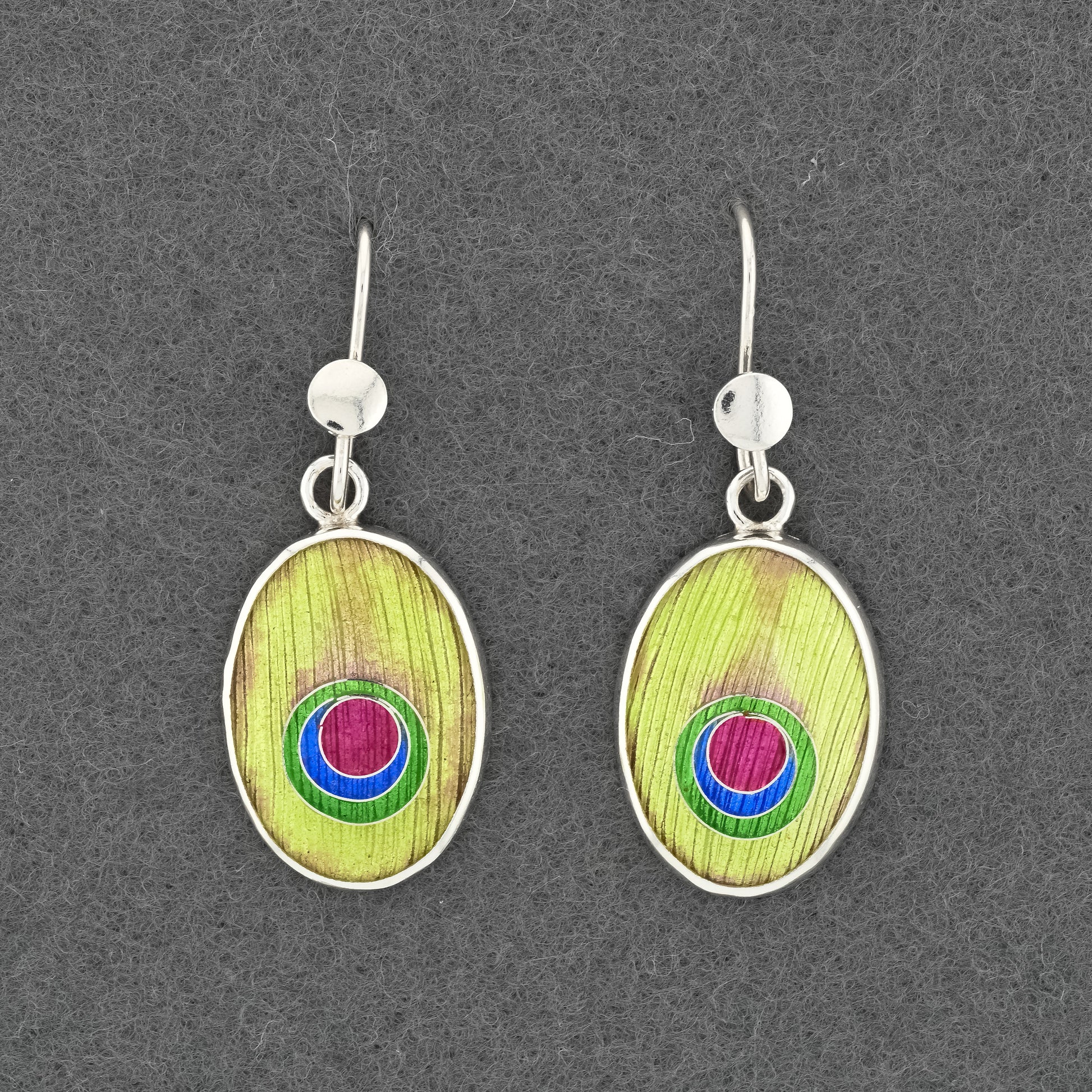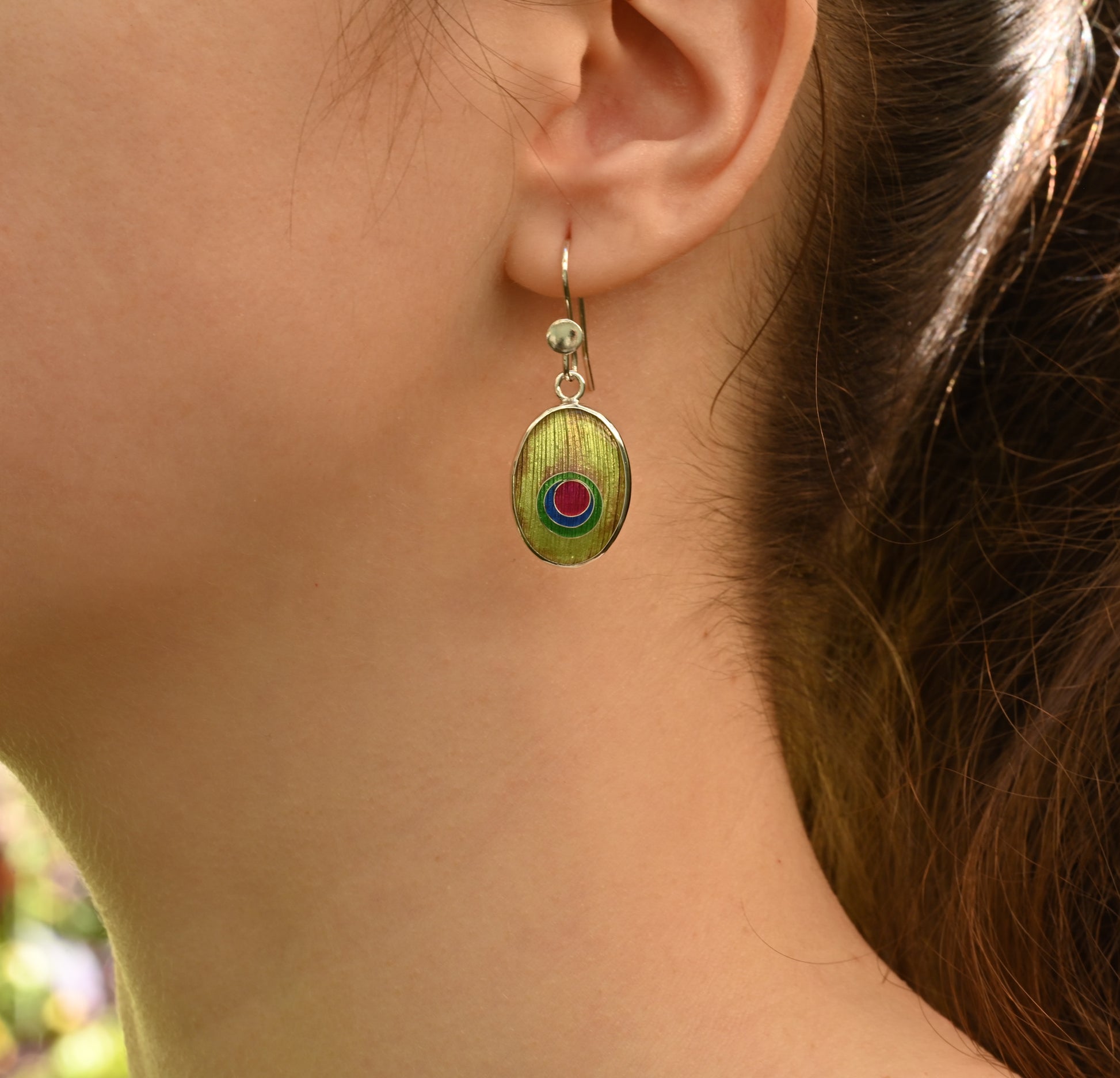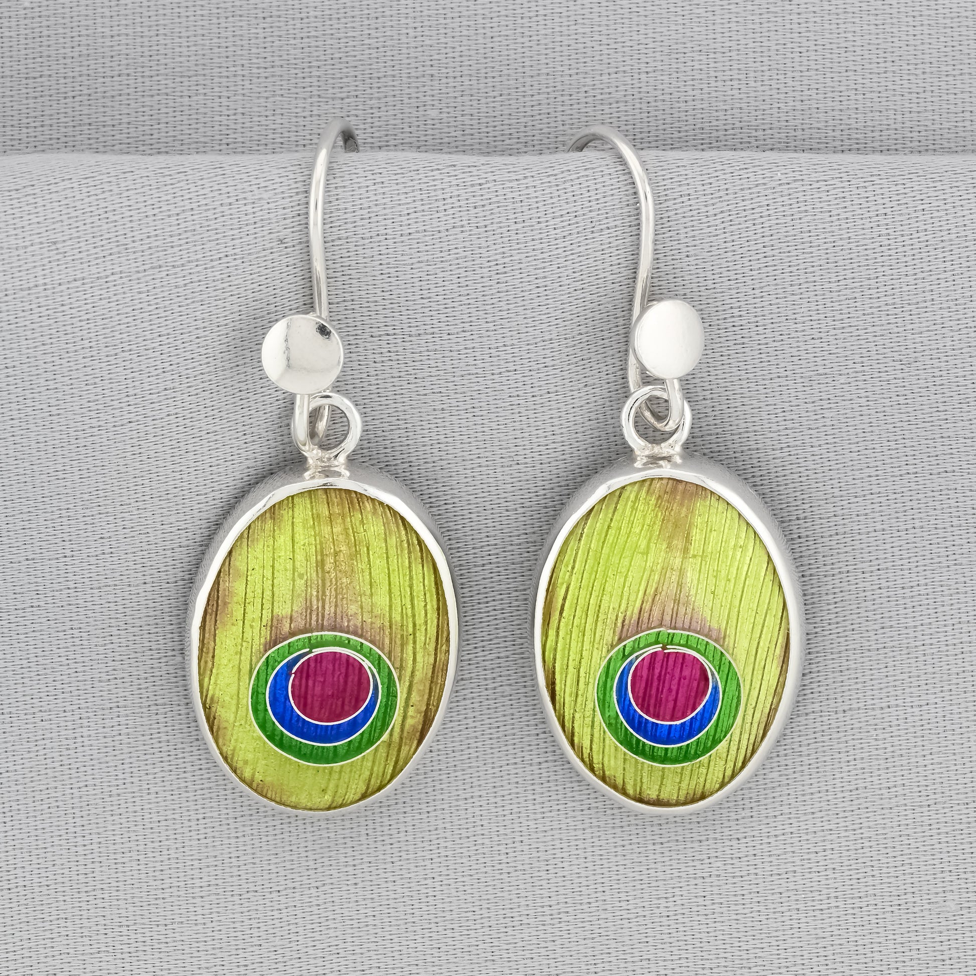Peacock Enamel Silver Earrings