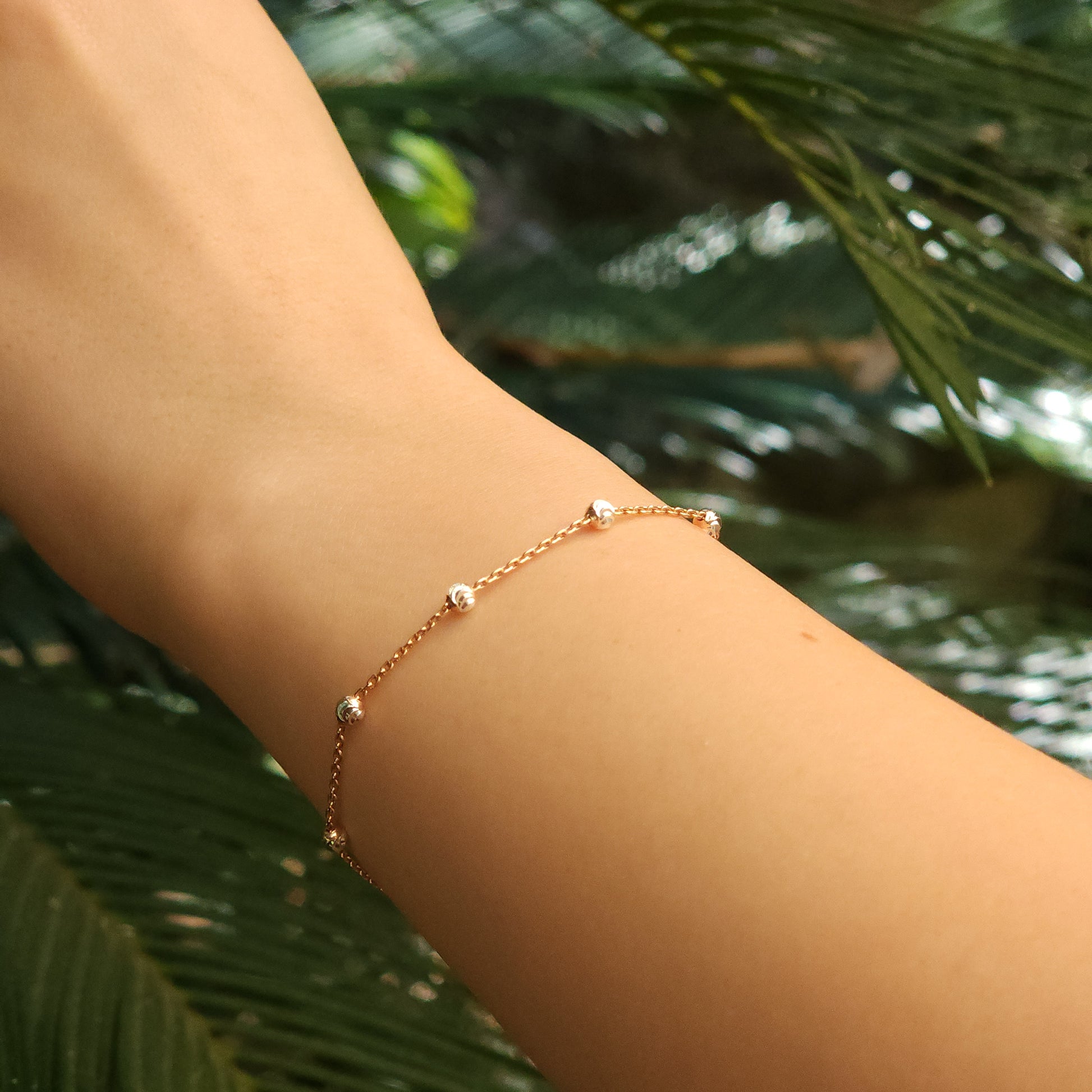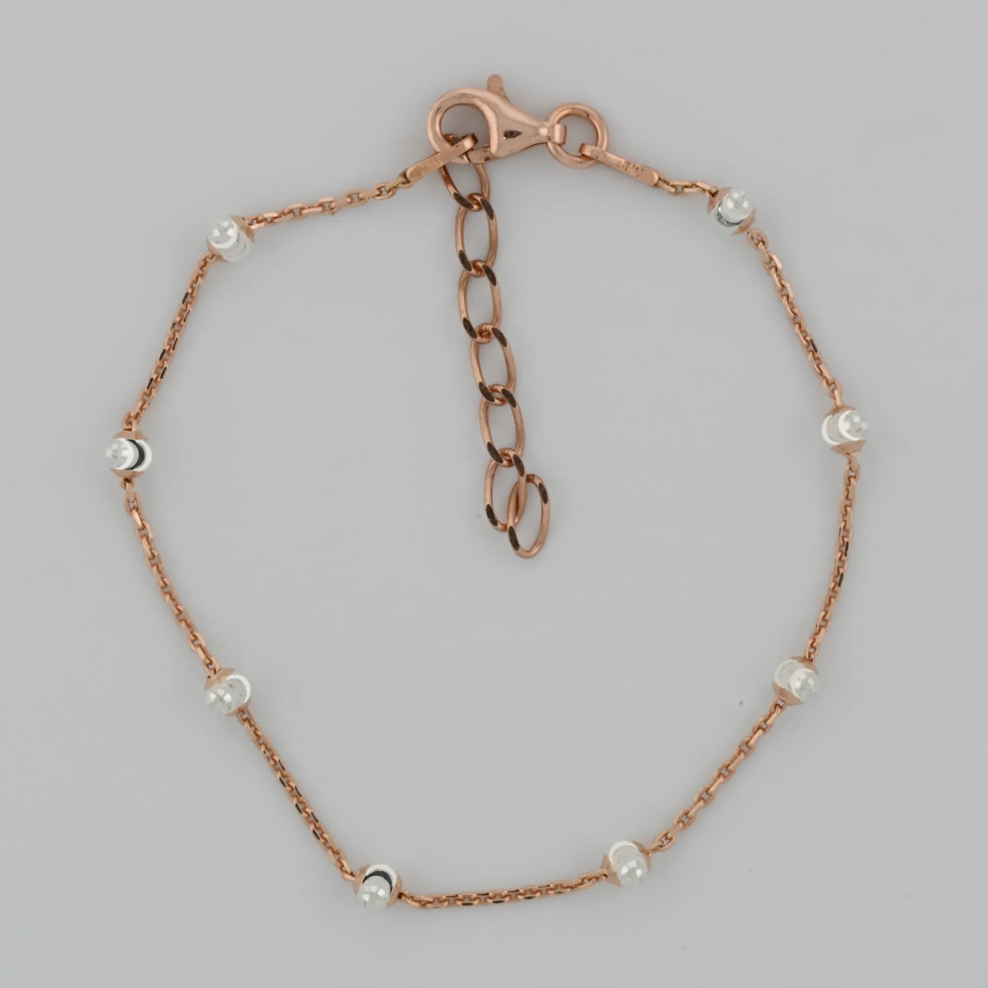 Add a touch of elegance to your jewellery collection with our Rose Gold Beaded Silver Bracelet. Crafted in Italy from sterling silver 925 and plated with 18ct rose gold, this bracelet features delicate beaded links, offering a sophisticated and versatile look perfect for any occasion.