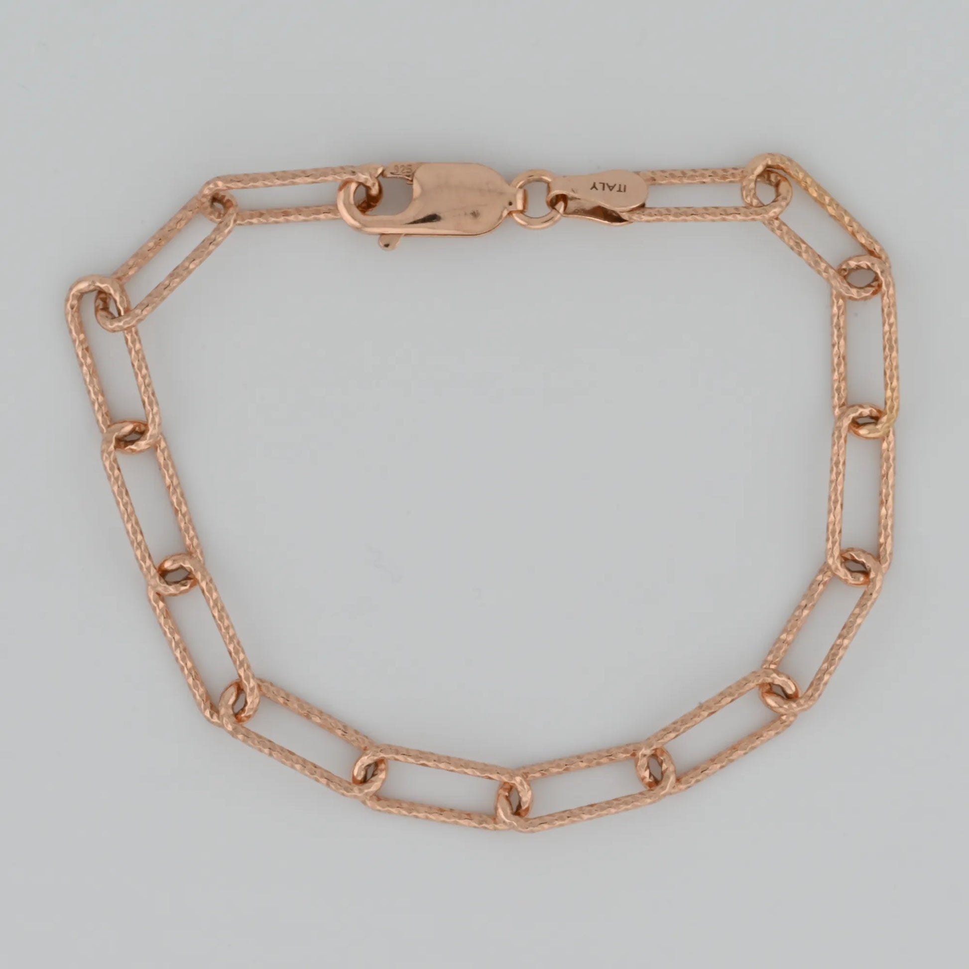 Rose Gold Plated Large Paperclip Silver Bracelet