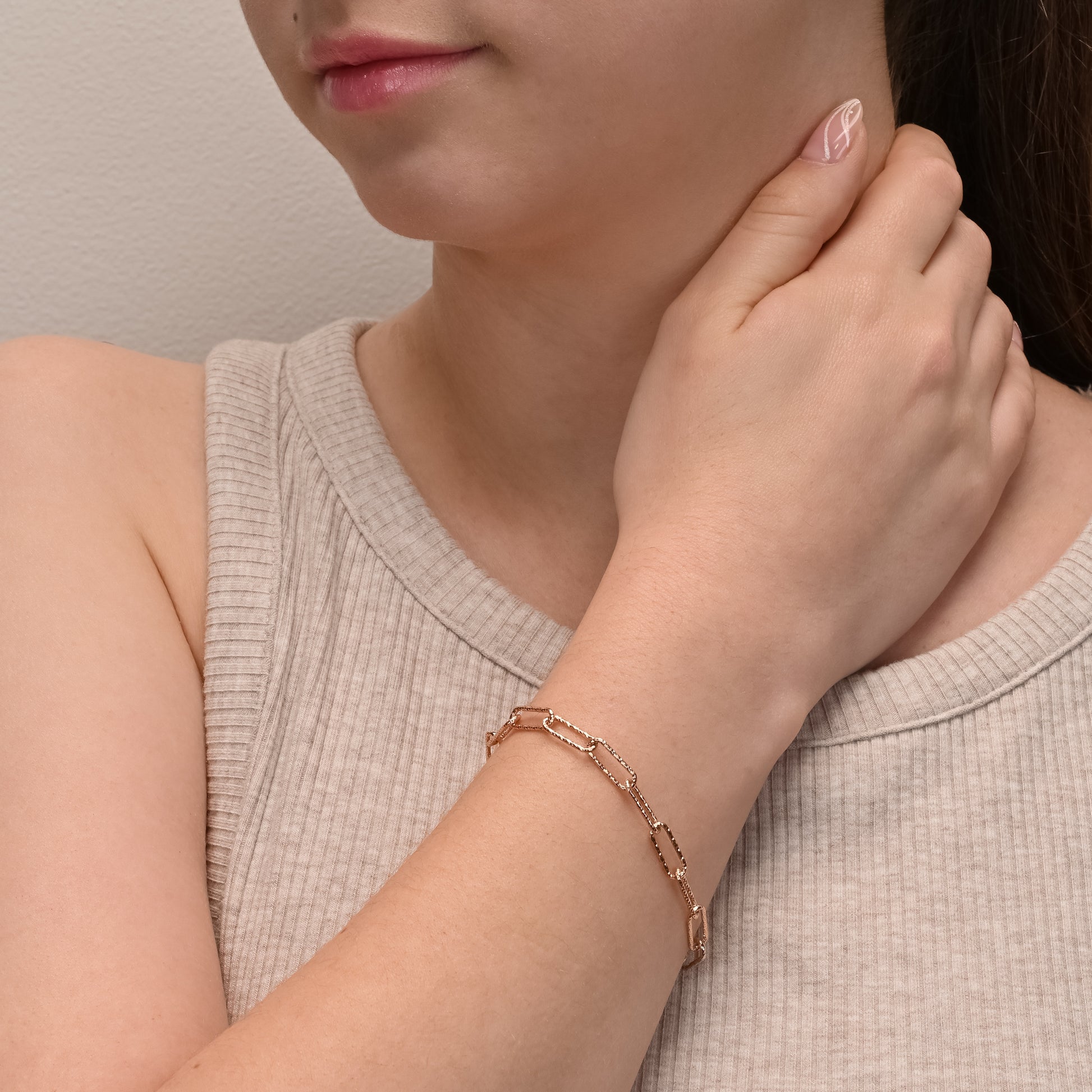 Elevate your jewellery collection with the contemporary elegance of our Rose Gold Plated Large Paperclip Silver Bracelet. Crafted in Italy from sterling silver 925 and plated with 18ct rose gold, this bracelet features large paperclip-style links, offering a modern and sophisticated look perfect for any occasion.