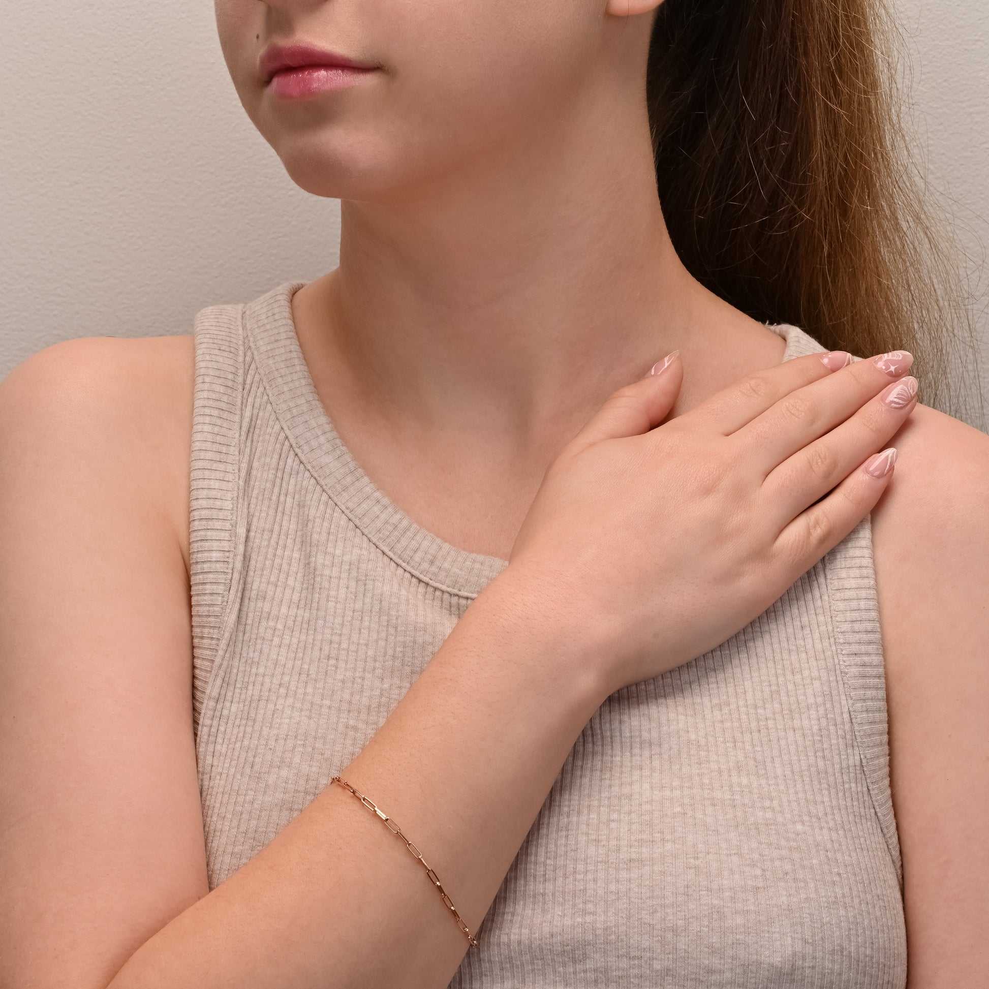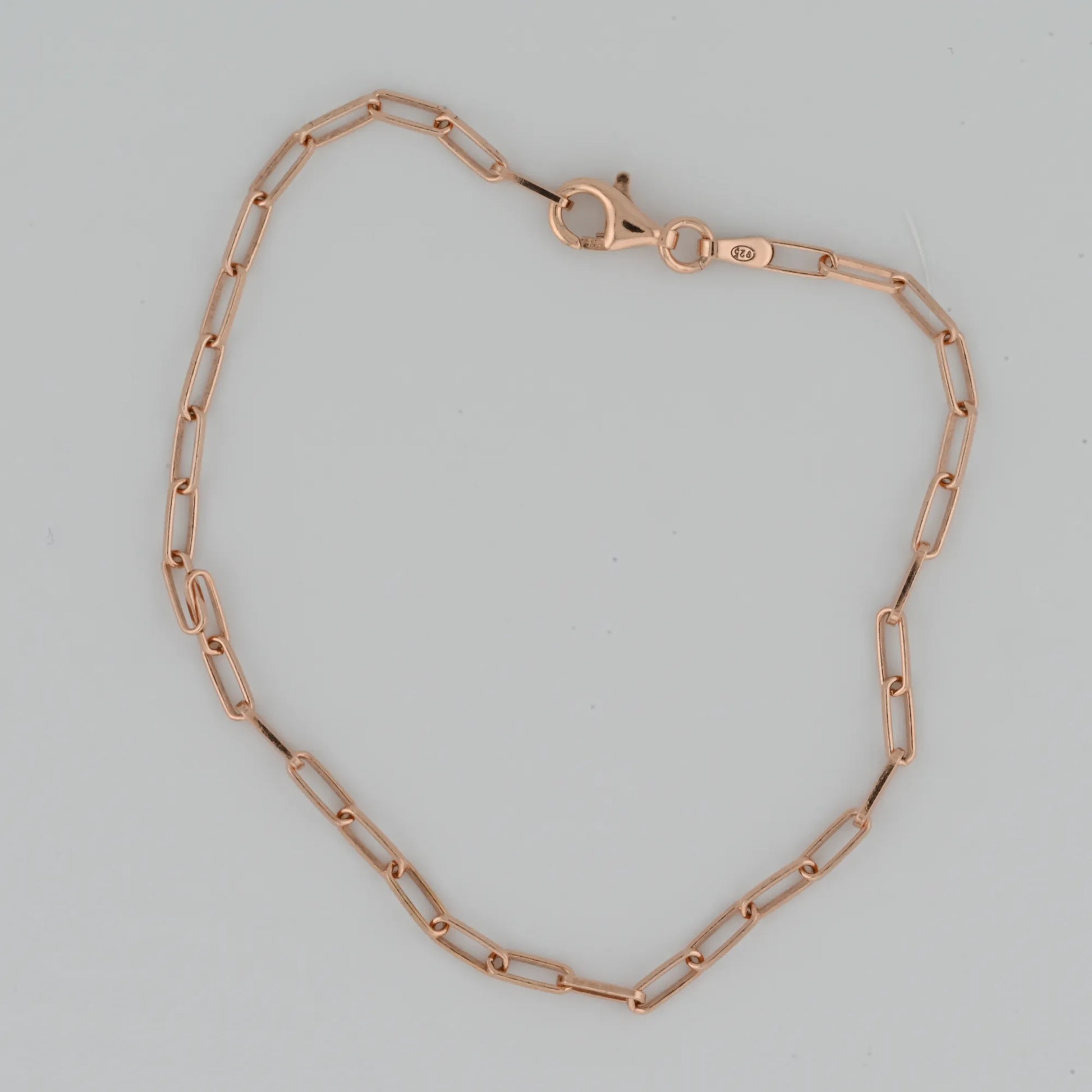 Elevate your jewellery collection with the modern elegance of our Rose Gold Plated Paperclip Silver Bracelet. Crafted in Italy from sterling silver 925 and plated with 18ct rose gold, this bracelet features stylish paperclip-style links, offering a refined and sophisticated look perfect for any occasion.