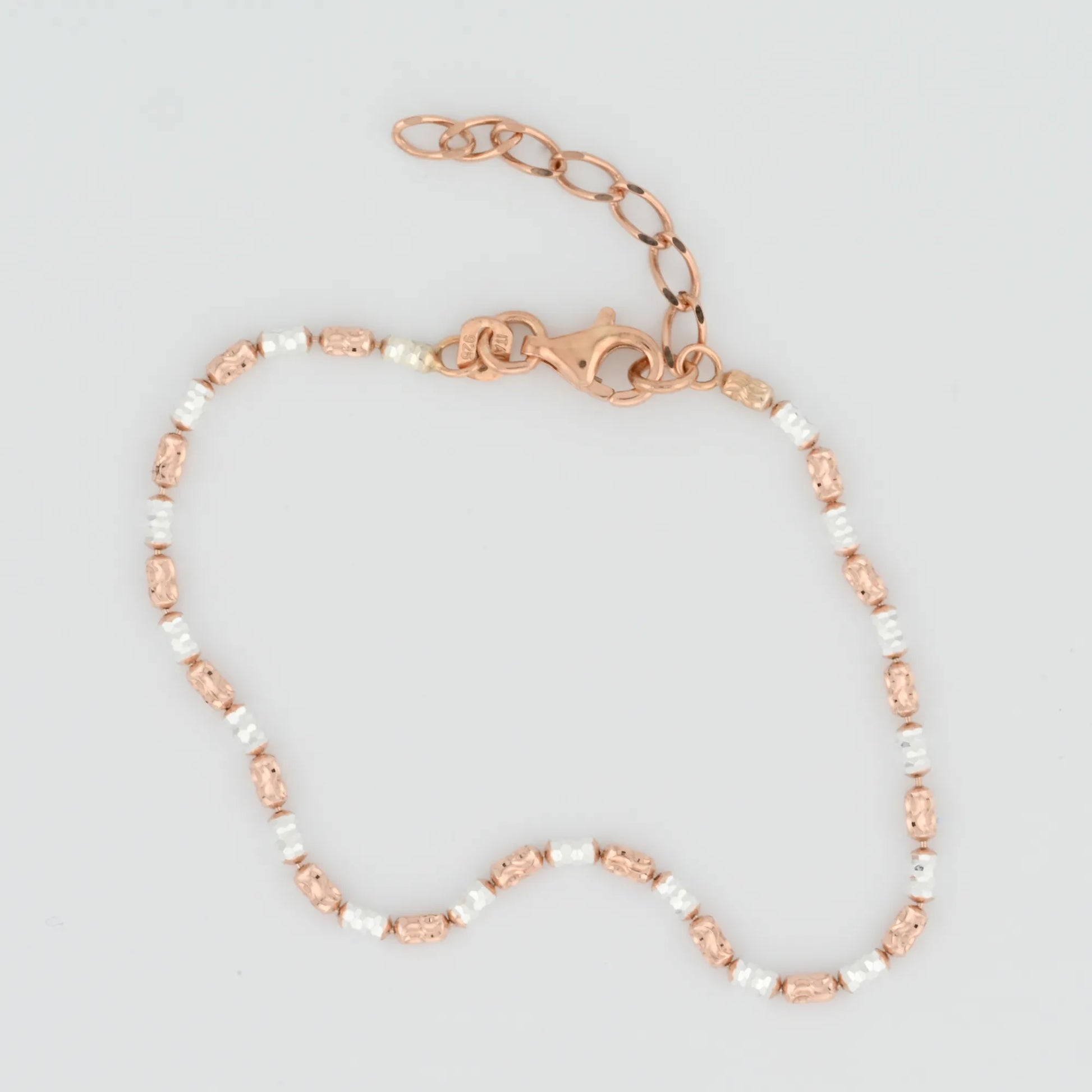 Rose Gold & Rhodium Plated Beaded Silver Bracelet