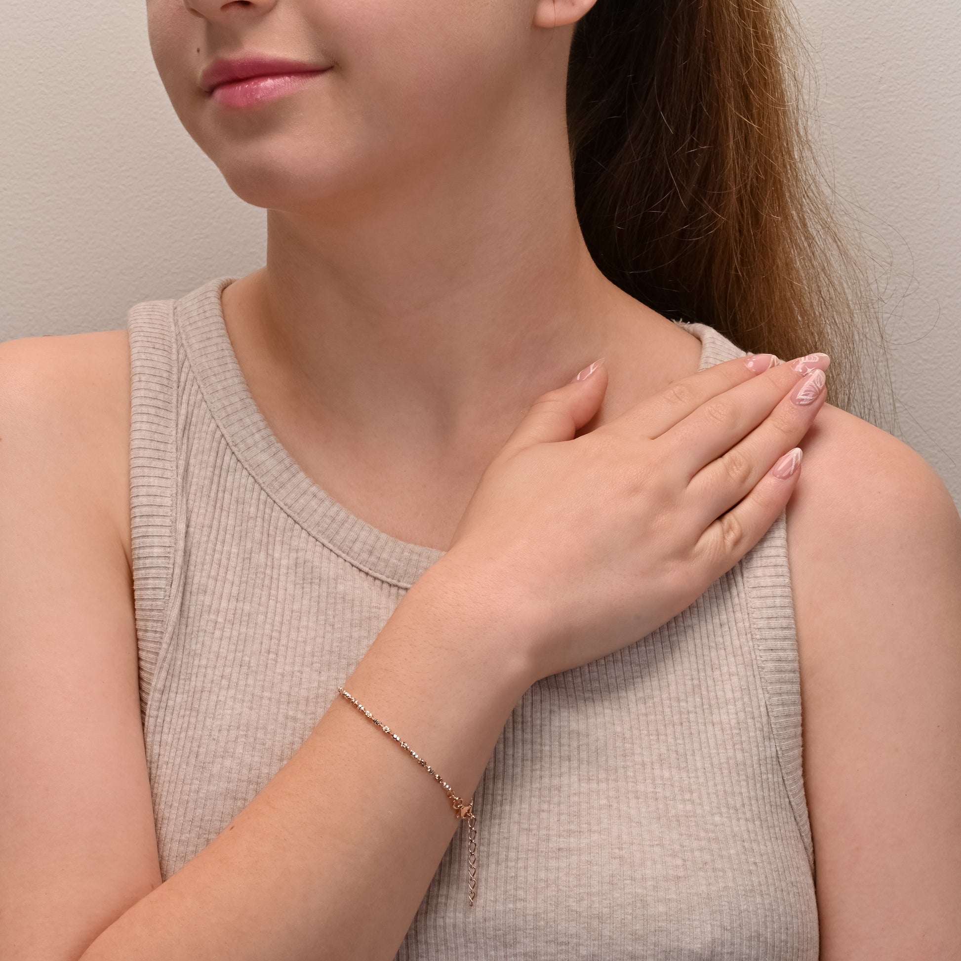 Enhance your jewellery collection with our exquisite Rose Gold & Rhodium Plated Beaded Silver Bracelet. Crafted in Italy from sterling silver 925, this elegant bracelet features 18ct rose gold and rhodium plating, adding a luxurious touch to its intricate beaded design. With a link size of 1.9mm, this bracelet offers a delicate and sophisticated look perfect for any occasion.