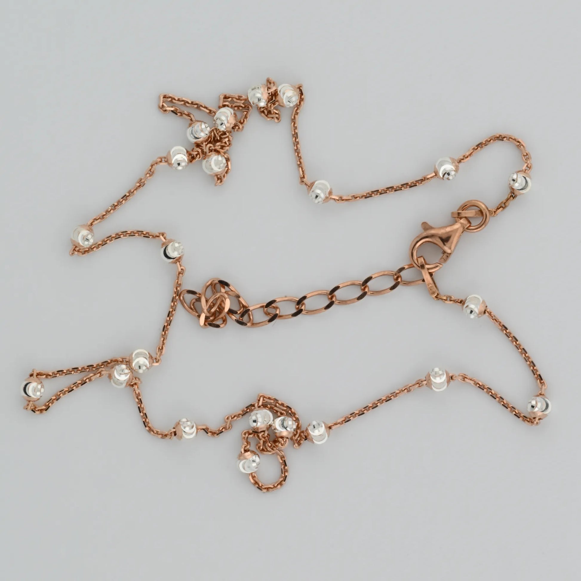 Add a touch of elegance to your ensemble with the Rose Gold & Rhodium Plated Silver Chain with Beads. This exquisite chain, crafted from sterling silver (925) and plated with 18ct rose gold and rhodium, features delicate beads that enhance its sophisticated design.