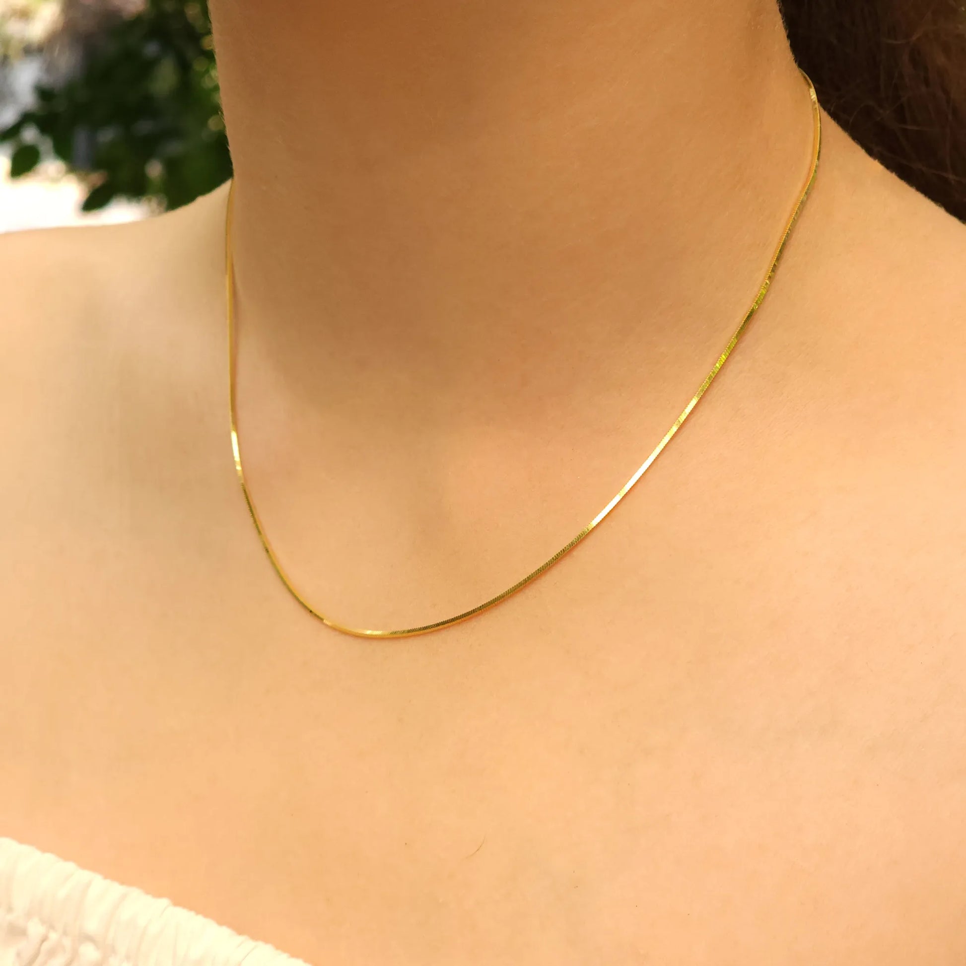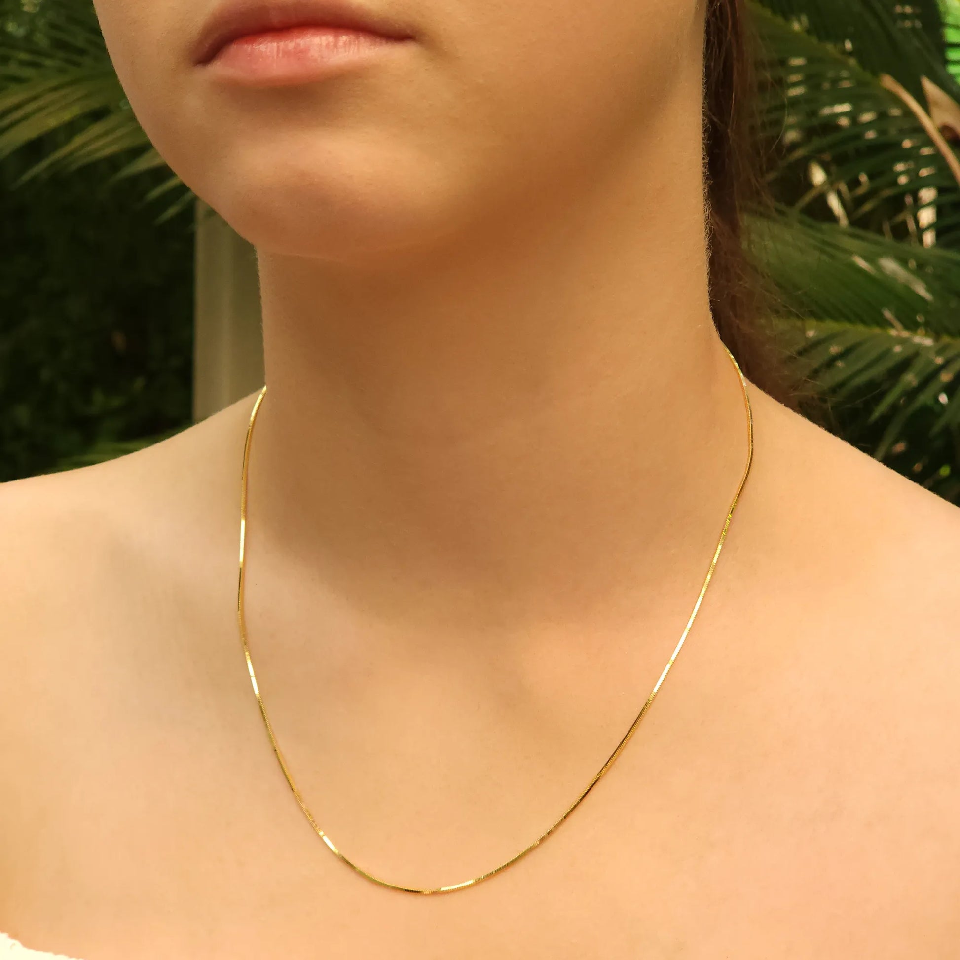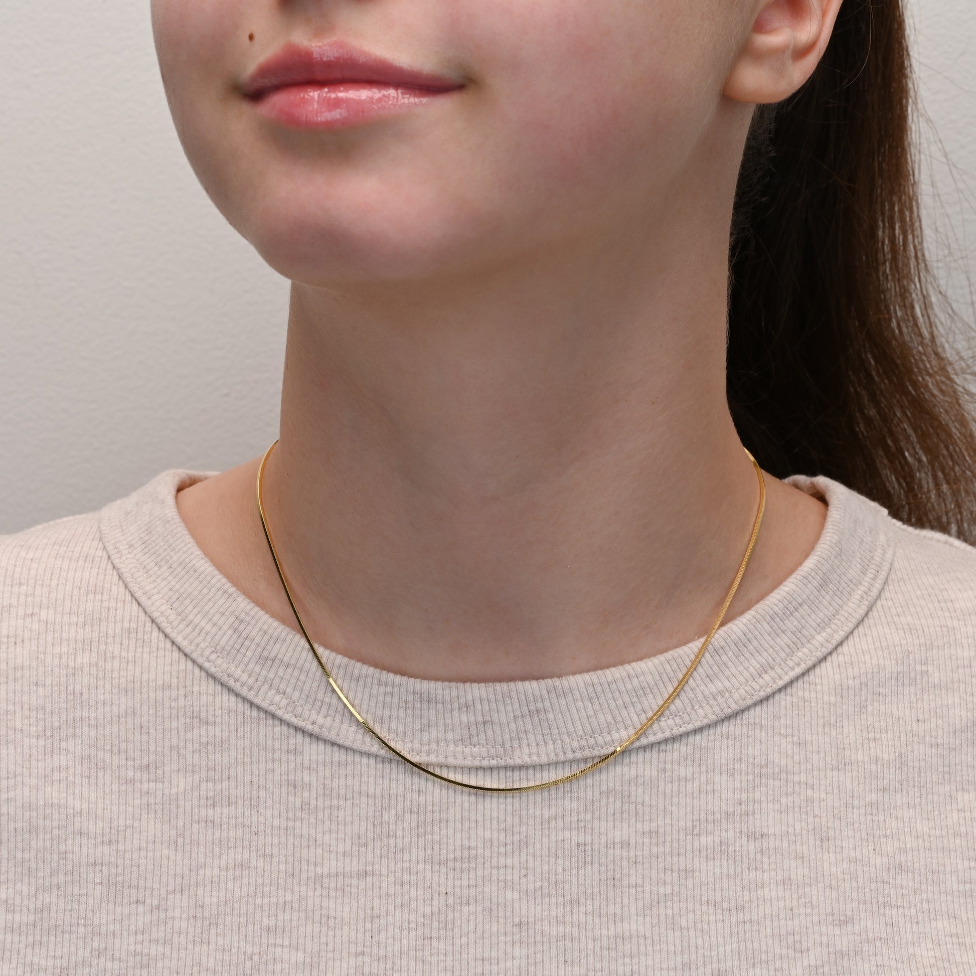 Add a touch of sleek elegance to your jewellery collection with our Gold Plated Silver Snake Chain. Crafted in Italy from sterling silver 925 and plated with 18ct gold, this chain features a smooth snake design with a link size of 1mm, offering a sophisticated and versatile look perfect for any occasion.