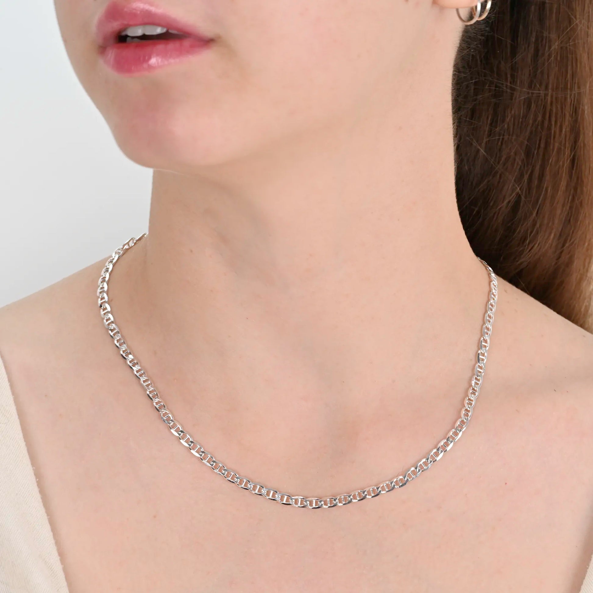 Embrace the allure of the sea with the Silver Marine Chain. With its stunning link, this chain is designed to catch the light and enhance any outfit with a touch of nautical elegance. Perfect for everyday wear or special occasions, this versatile piece is a must-have addition to your jewelry collection.