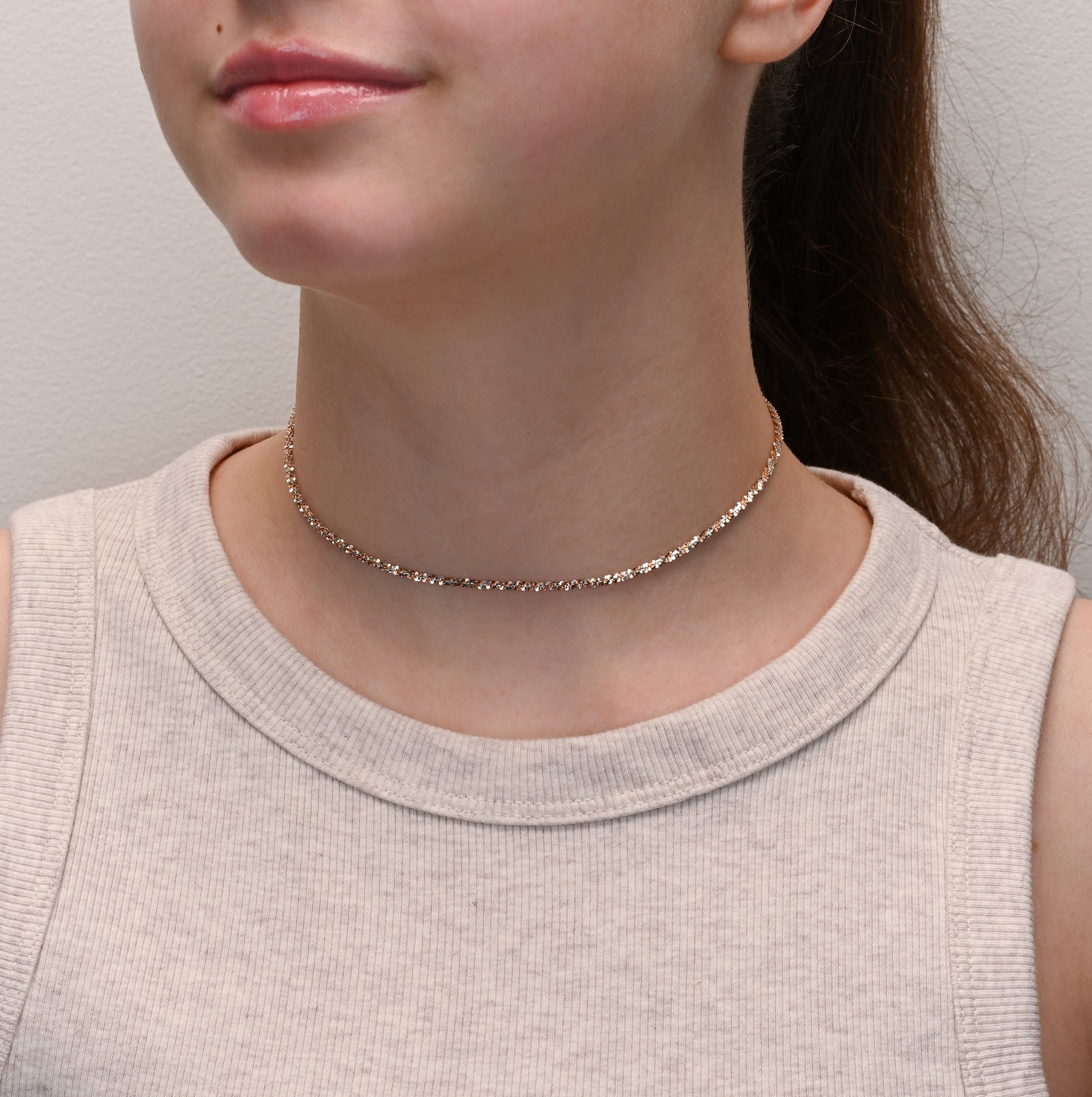 Elevate your style with the dazzling Margarita Sparkle Rose Gold And Rhodium Silver Chain. This exquisite chain is crafted from sterling silver (925) and plated with 18ct rose gold and rhodium, offering a stunning combination of contemporary design and classic elegance.