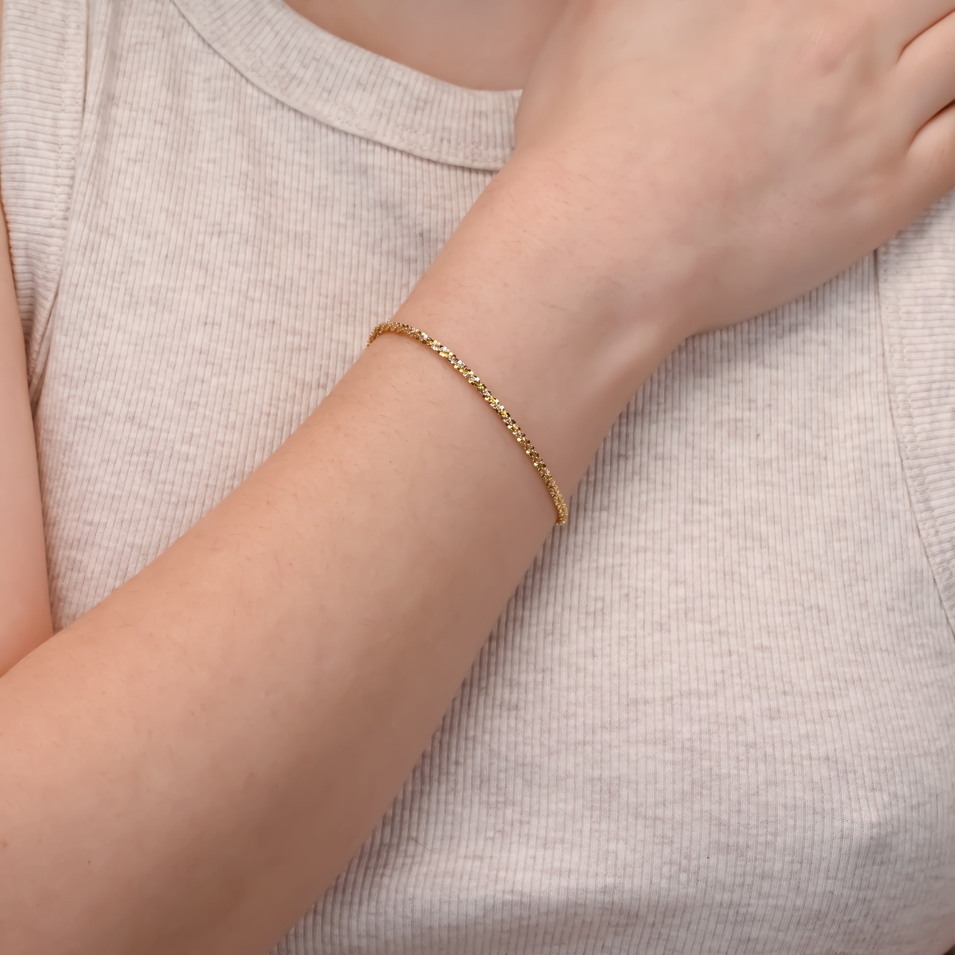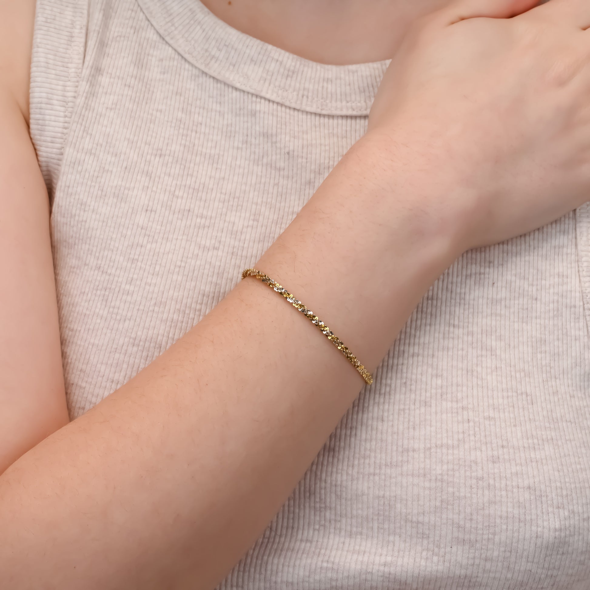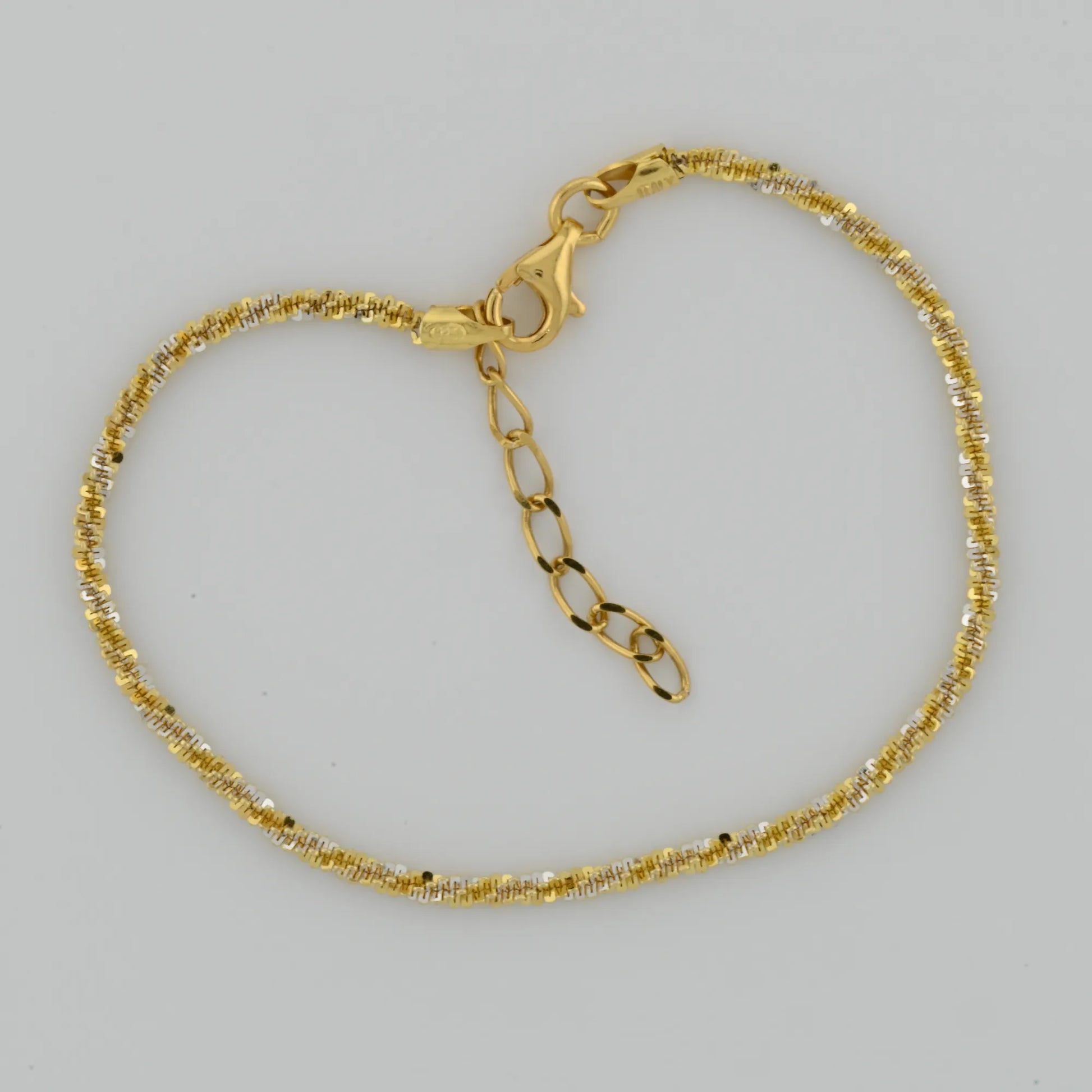 Enhance your jewelry collection with the exquisite charm of our Margarita Yellow Gold & Rhodium Plated Silver Bracelet. Crafted in Italy from sterling silver 925 and plated with 18ct yellow gold and rhodium, this bracelet features delicate links with a size of 2.7mm, offering a refined and sophisticated look perfect for any occasion.