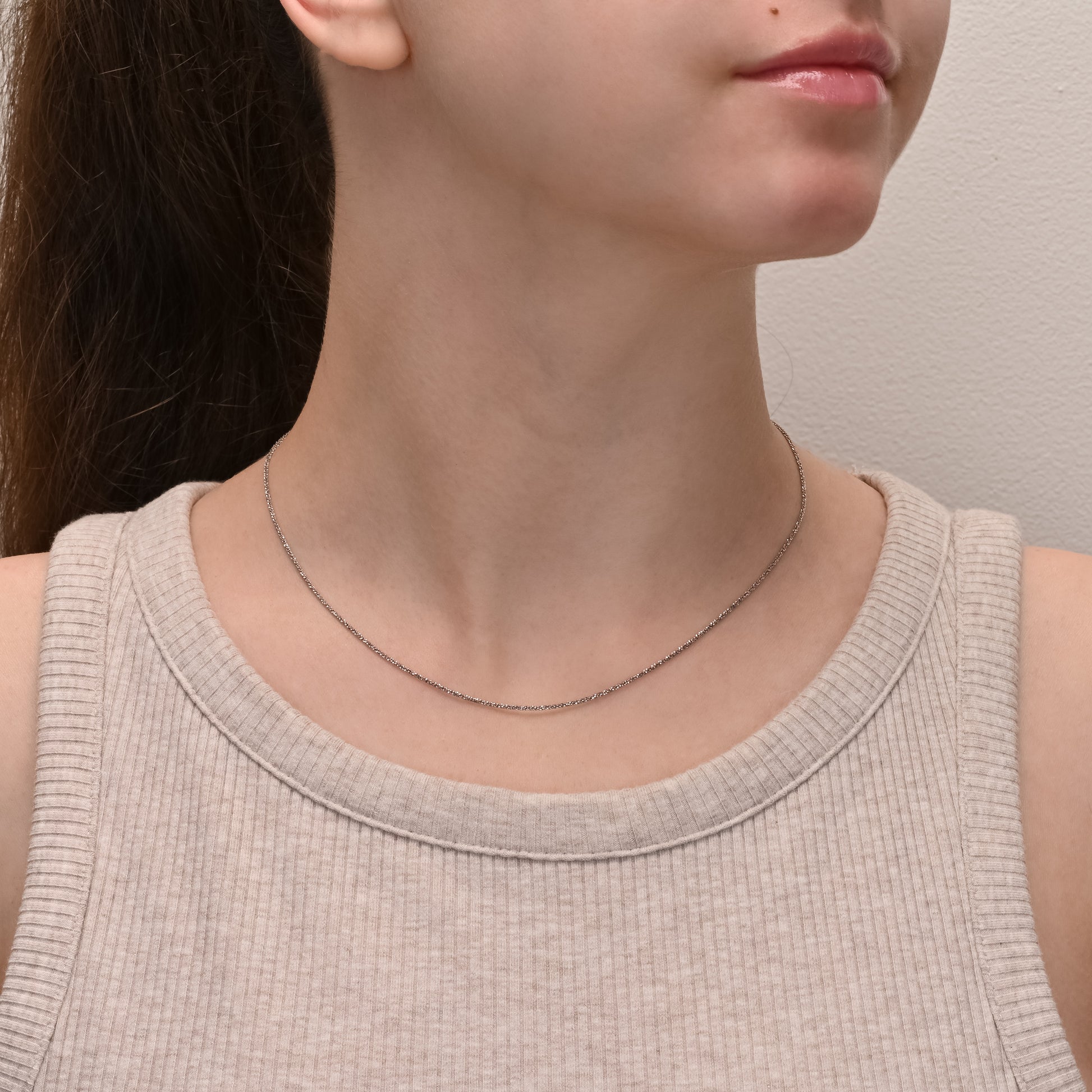 Add a touch of refined elegance to your jewellery collection with our Sterling Silver Margarita Chain. Crafted in Italy from sterling silver 925 and rhodium plated for enhanced durability and shine, this chain features delicate margarita-style links with a size of 1.1mm, offering a sophisticated and versatile look perfect for any occasion.