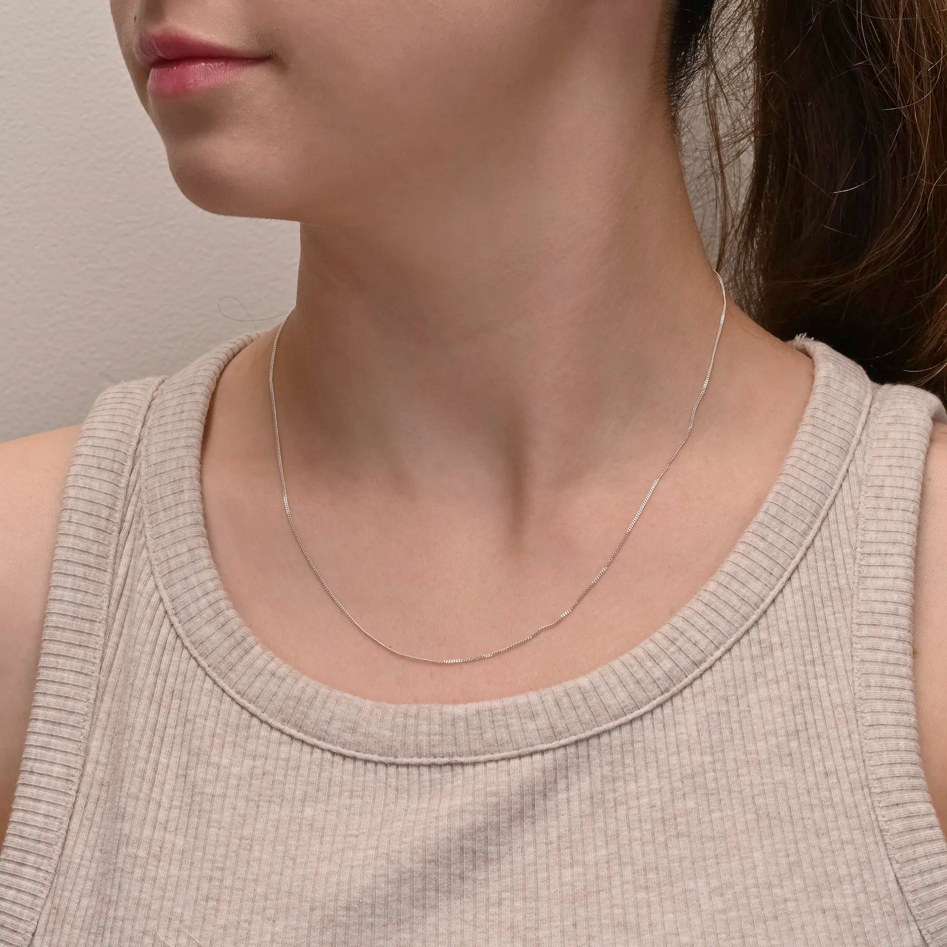 Enhance your jewellery collection with the subtle elegance of our Very Delicate Silver Curb Chain. Crafted in Italy from sterling silver 925 and fine silver plated, this chain features fine curb-style links with a size of 0.45mm, offering a refined and sophisticated look perfect for any occasion.