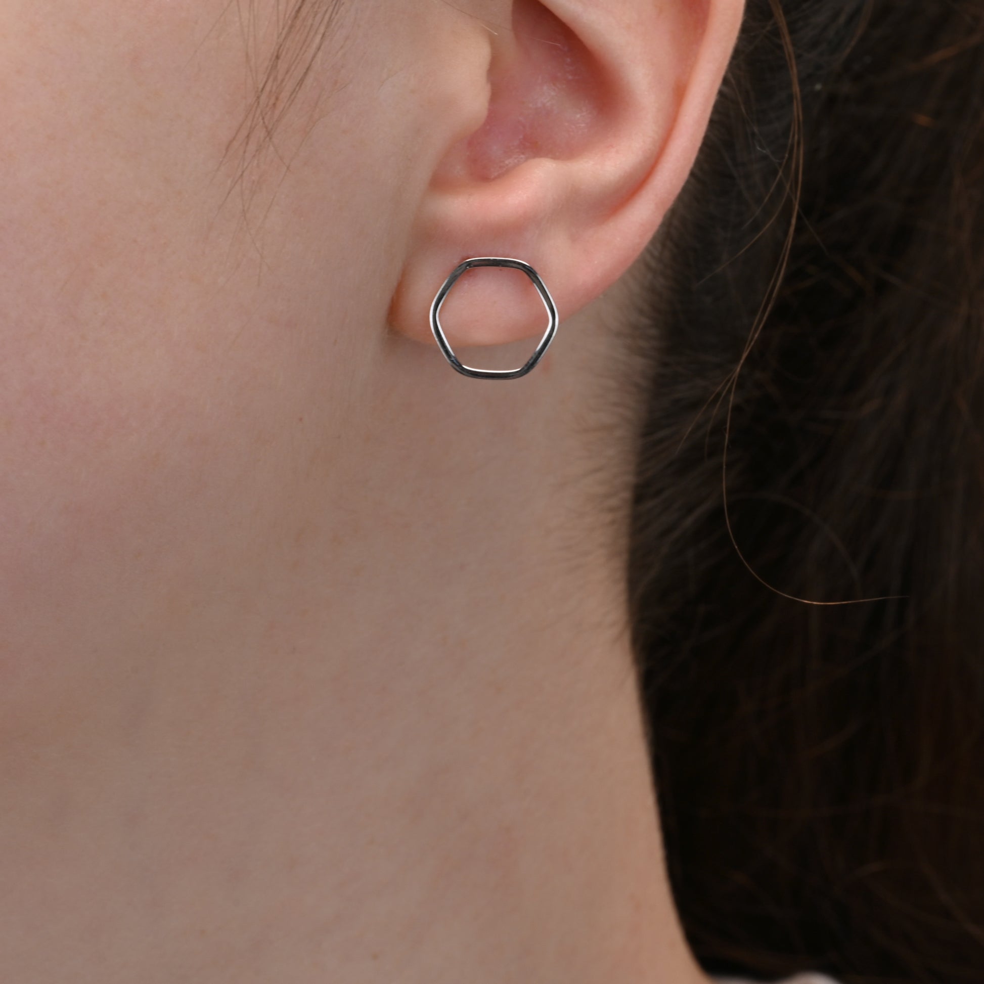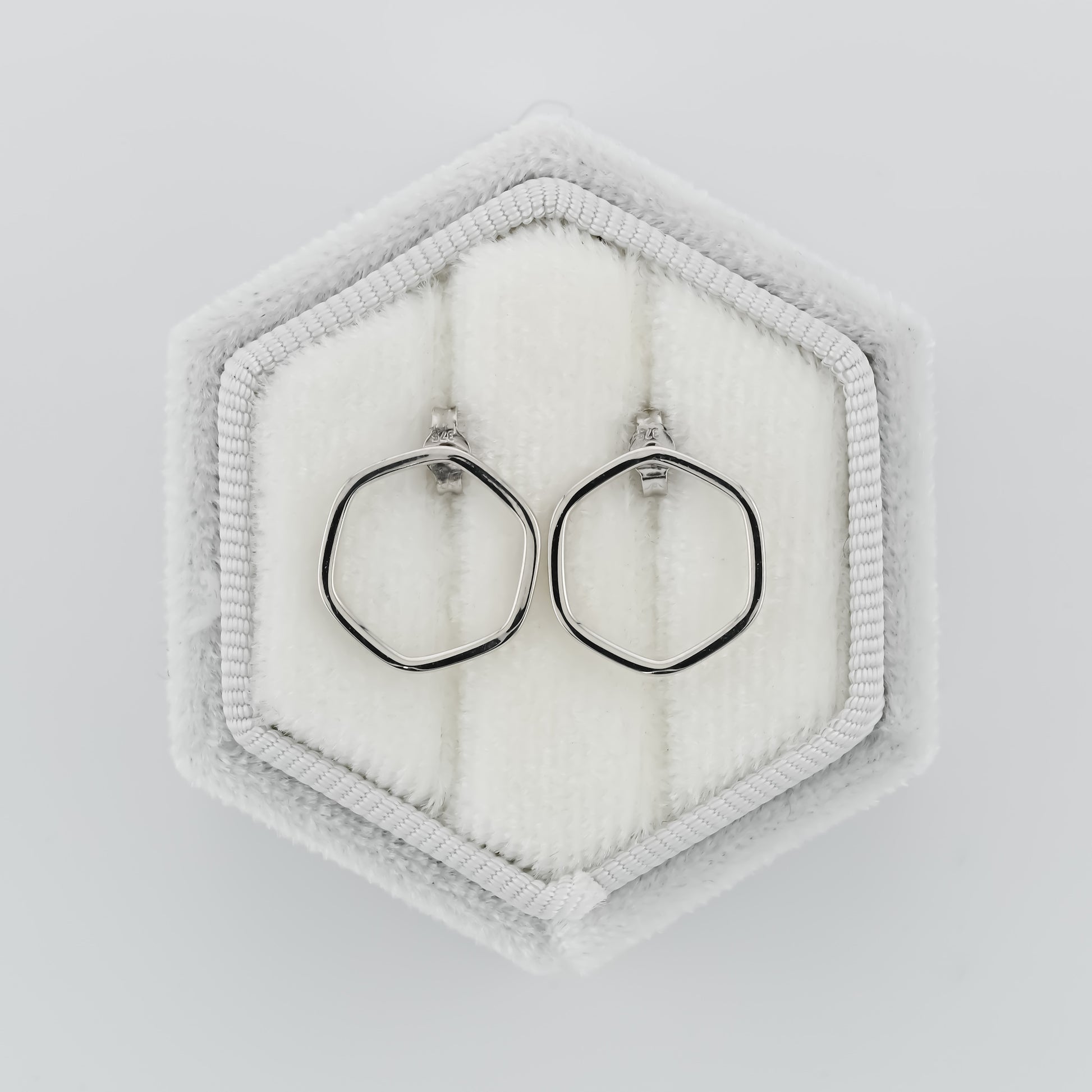 White Gold Hexagonal Earrings