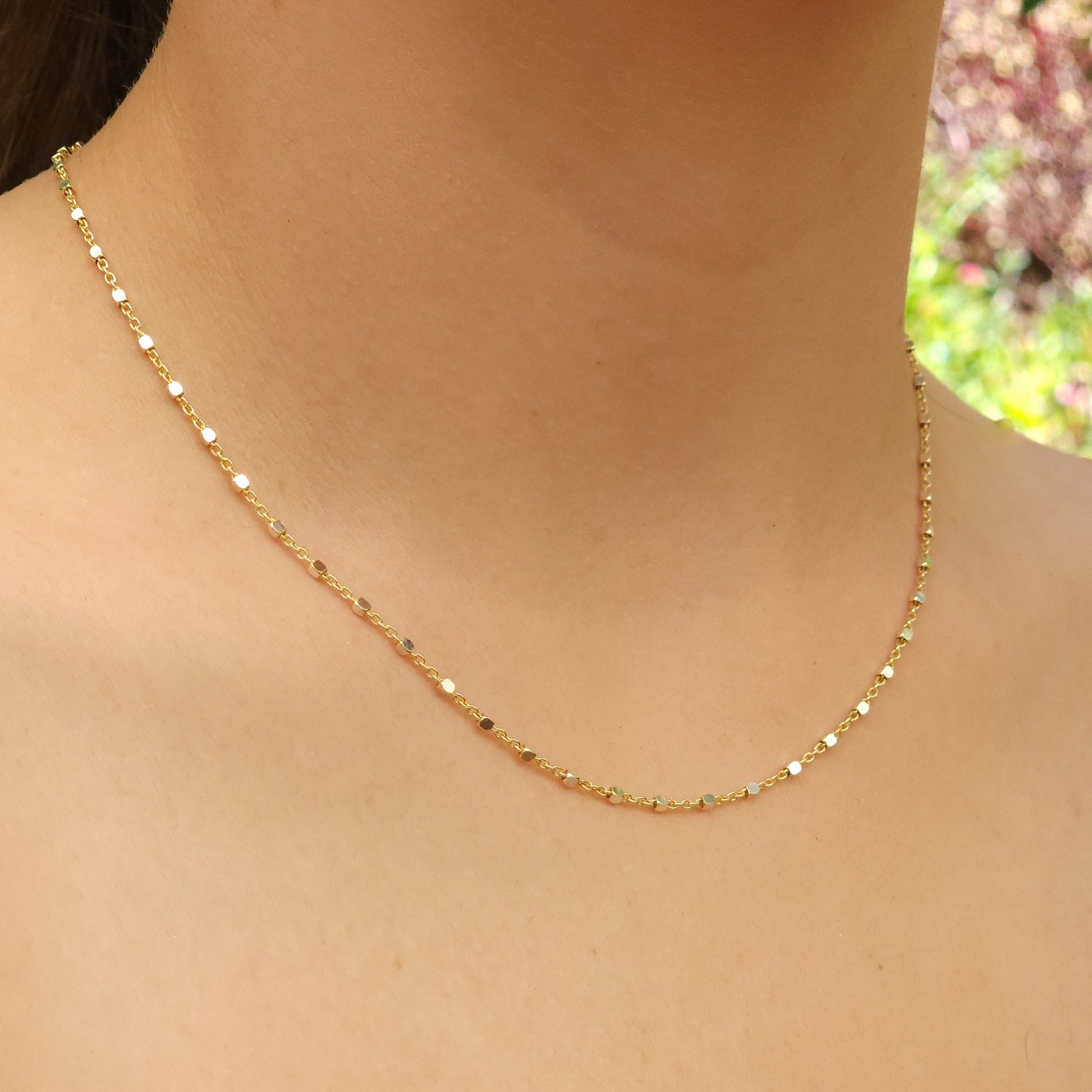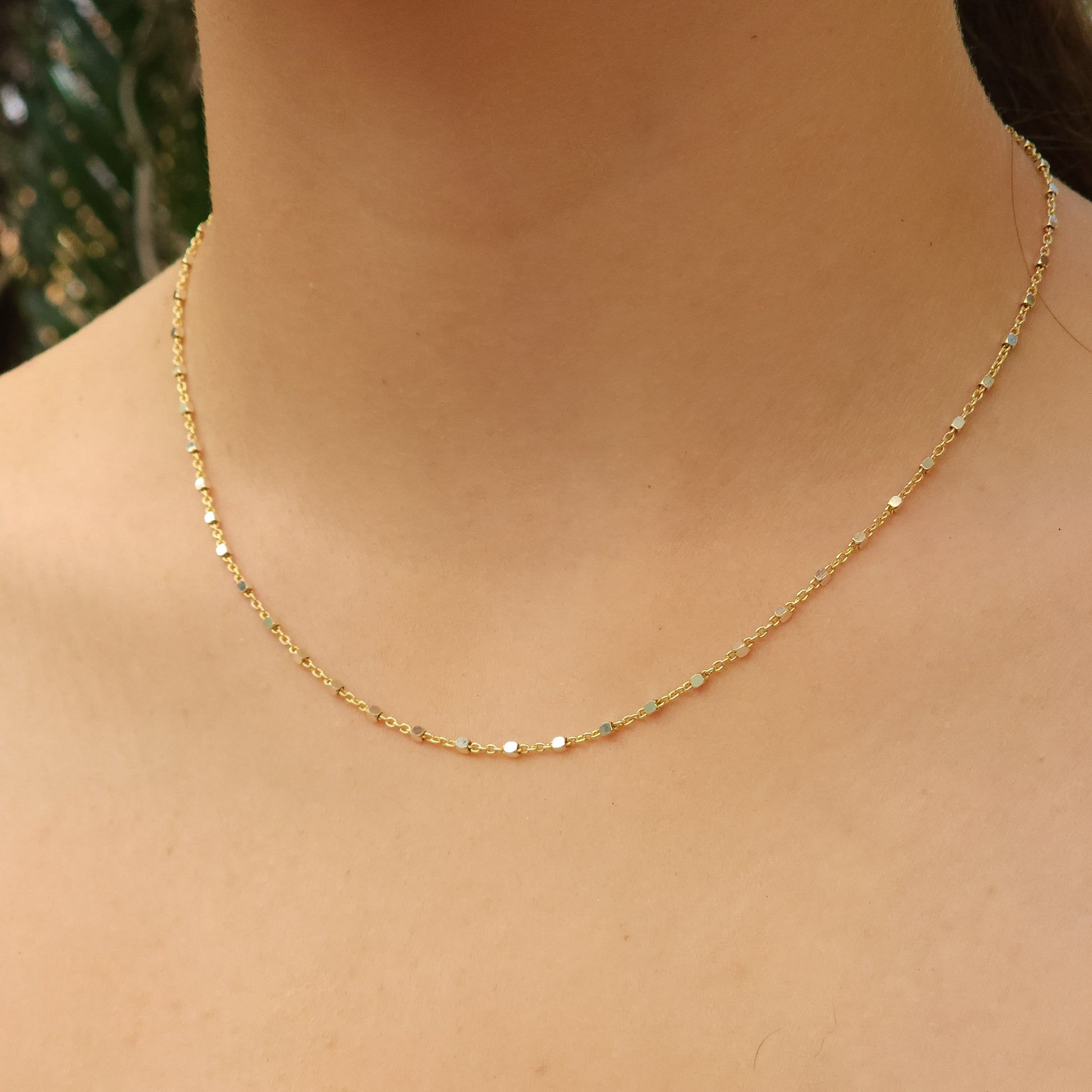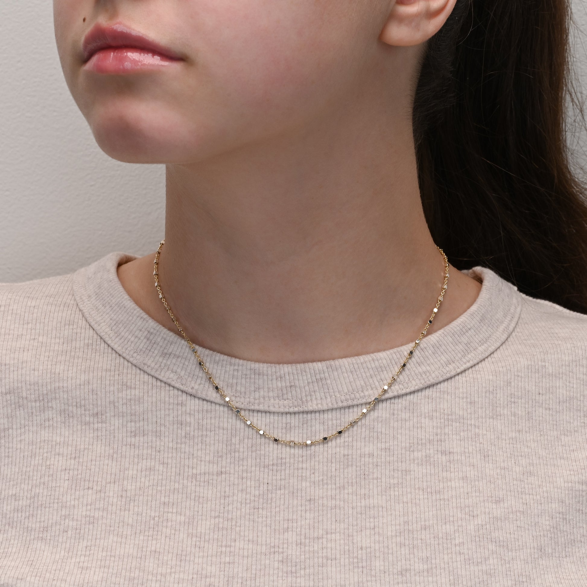 Introduce a unique blend of elegance and contemporary style to your jewellery collection with our Yellow Gold Chain with Rhodium Cube Beads. Crafted in Italy from sterling silver 925, this chain features an 18ct gold plated design, accented with rhodium plated cube beads, providing a striking contrast and modern appeal.