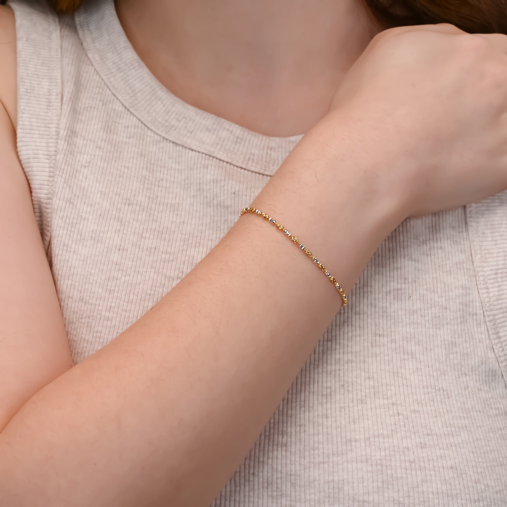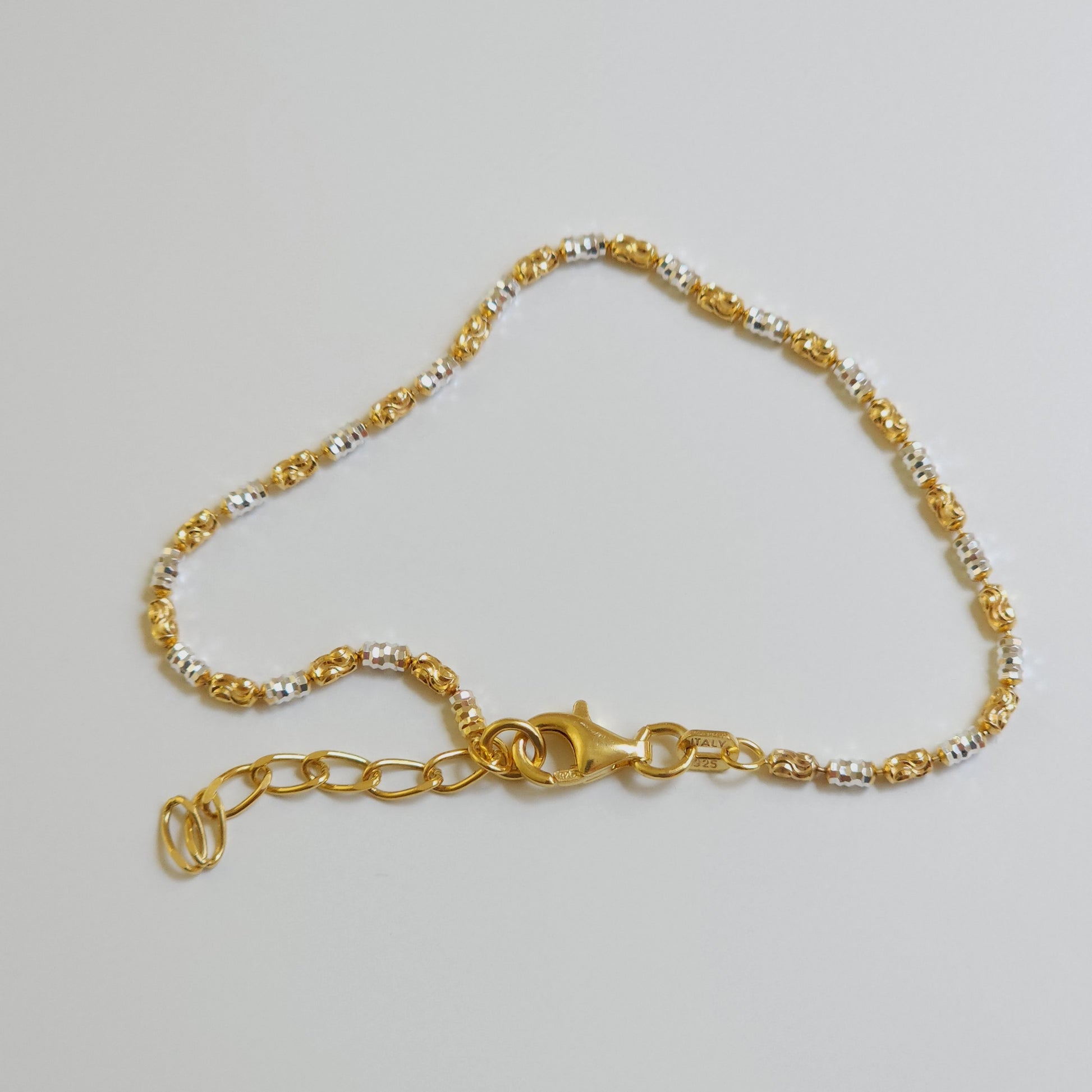 Yellow Gold & Rhodium Beaded Silver Bracelet
